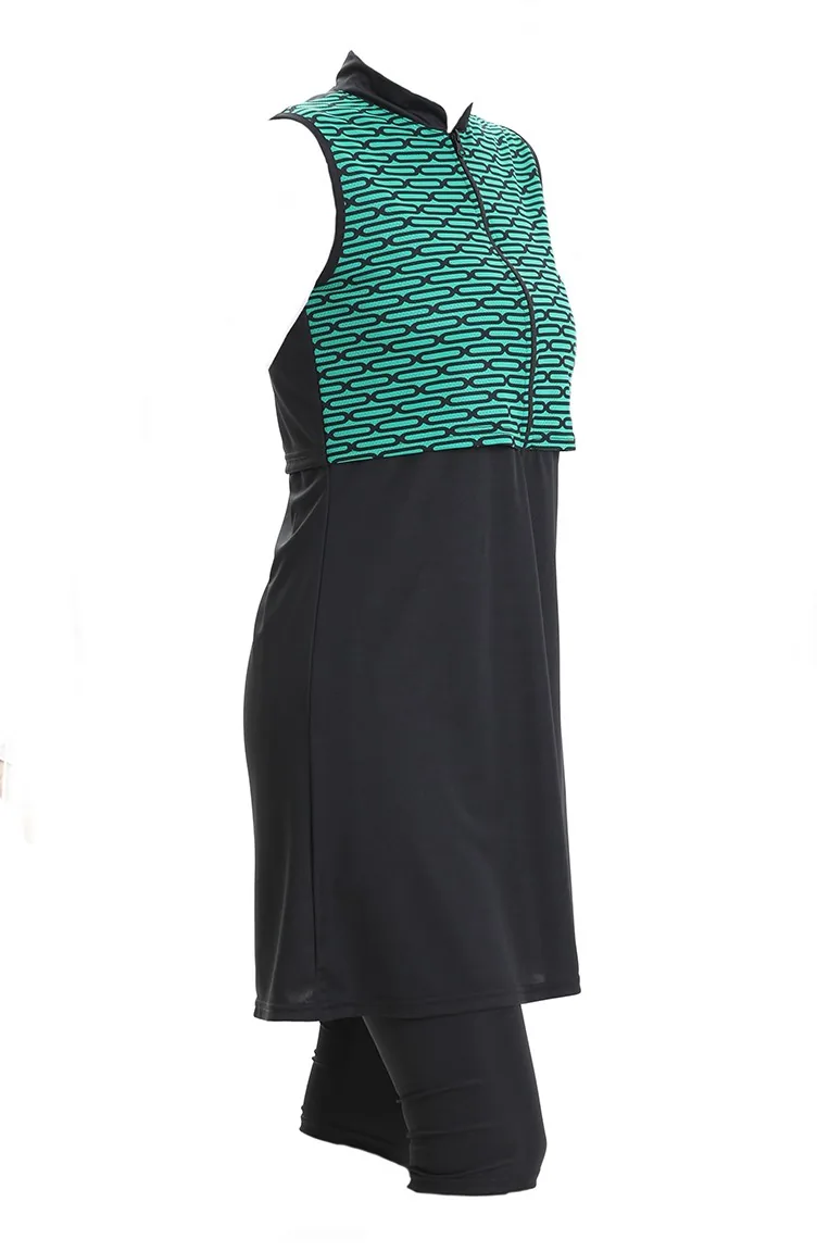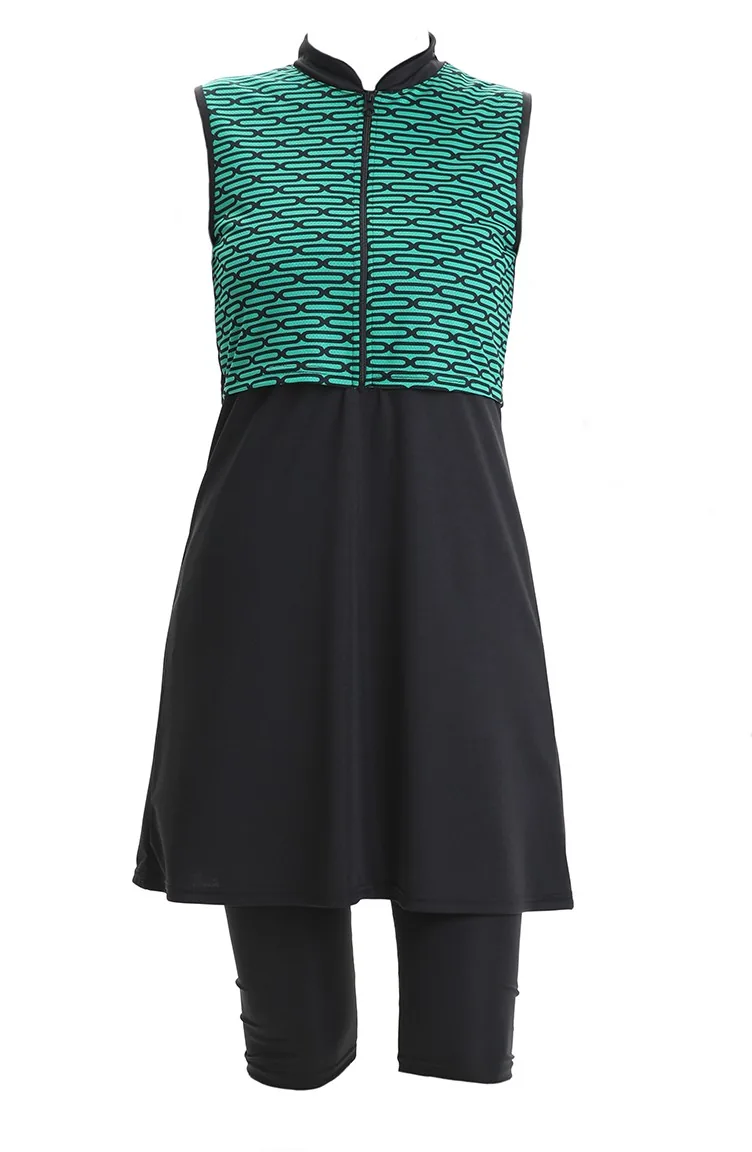 Desenli Kolsuz Havuz Mayo 2511-02 Zümrüt Yeşili Siyah