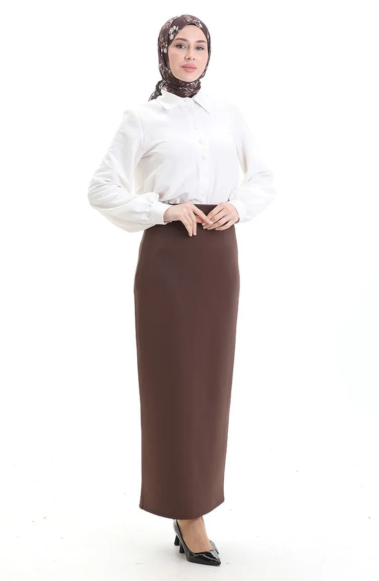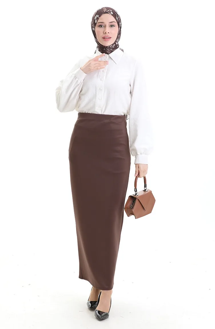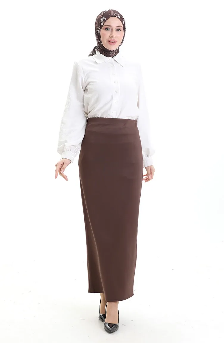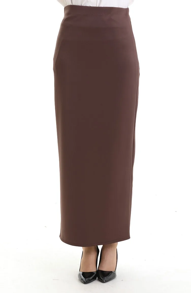 Düz Kalem Etek 0172-01 Kahverengi