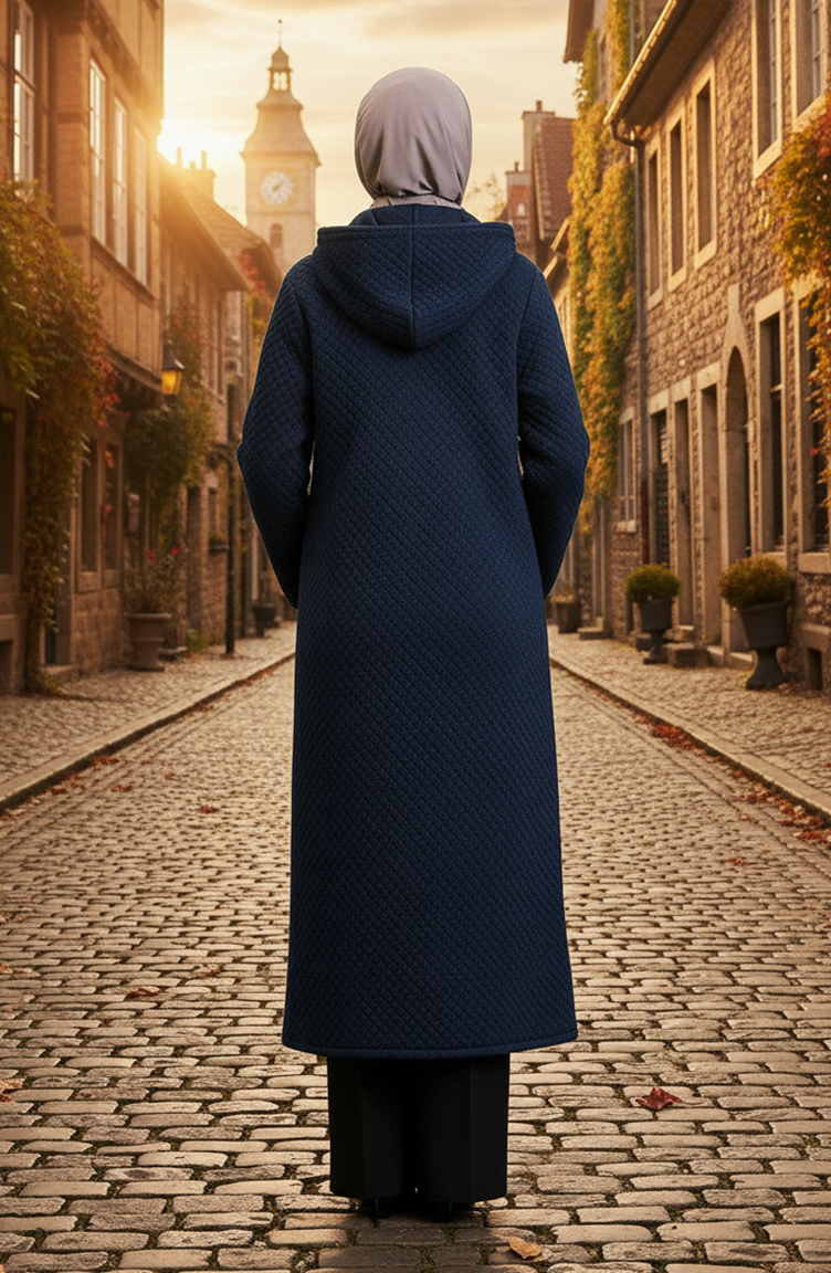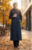 Lacivert renktedir. Kapitone. Sade. Düğmeli. Kışlık. Büyük beden seçeneği mevcuttur.