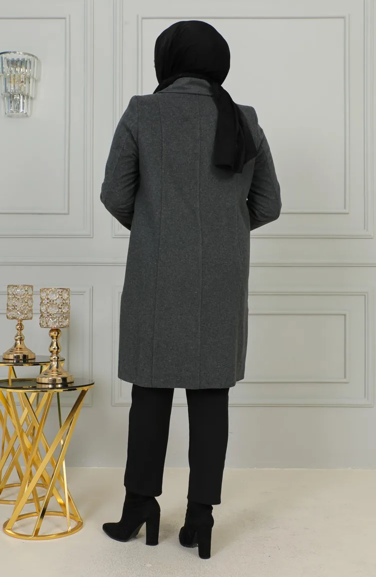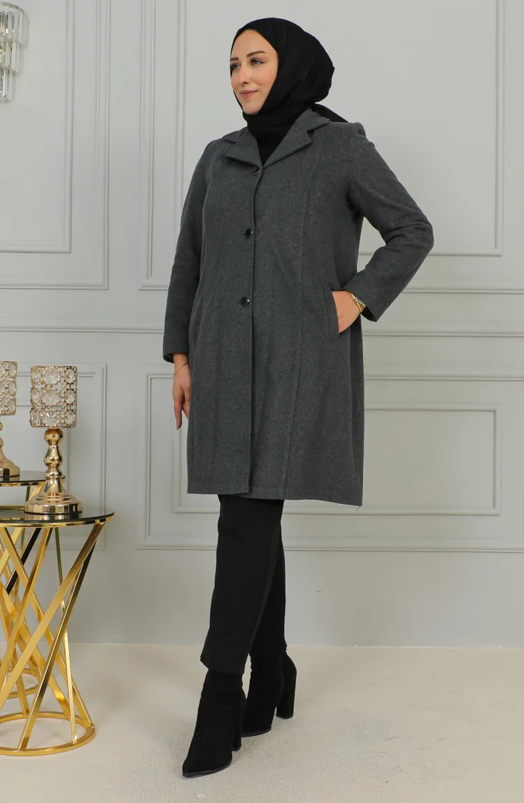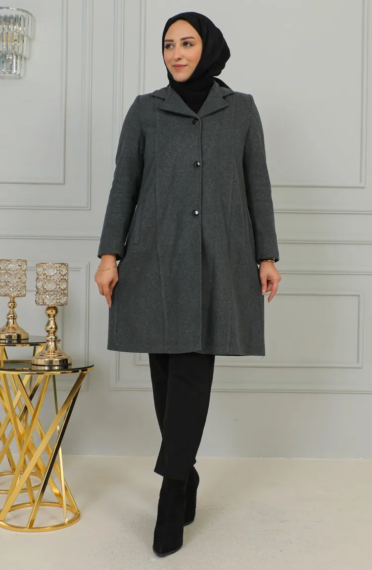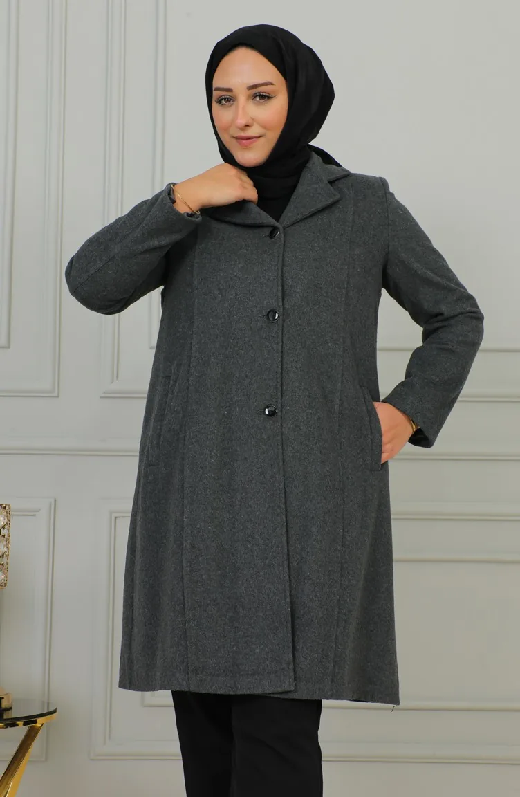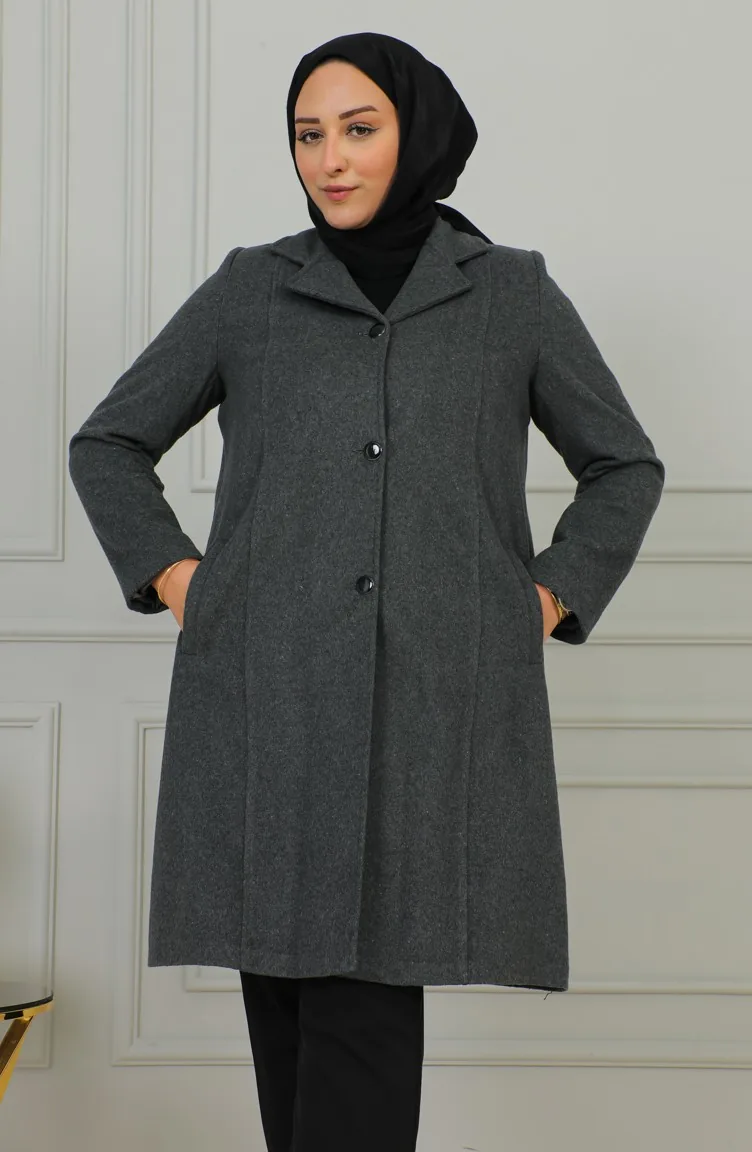 Büyük Beden Düğmeli Kaşe Kaban 1176-05 Gri