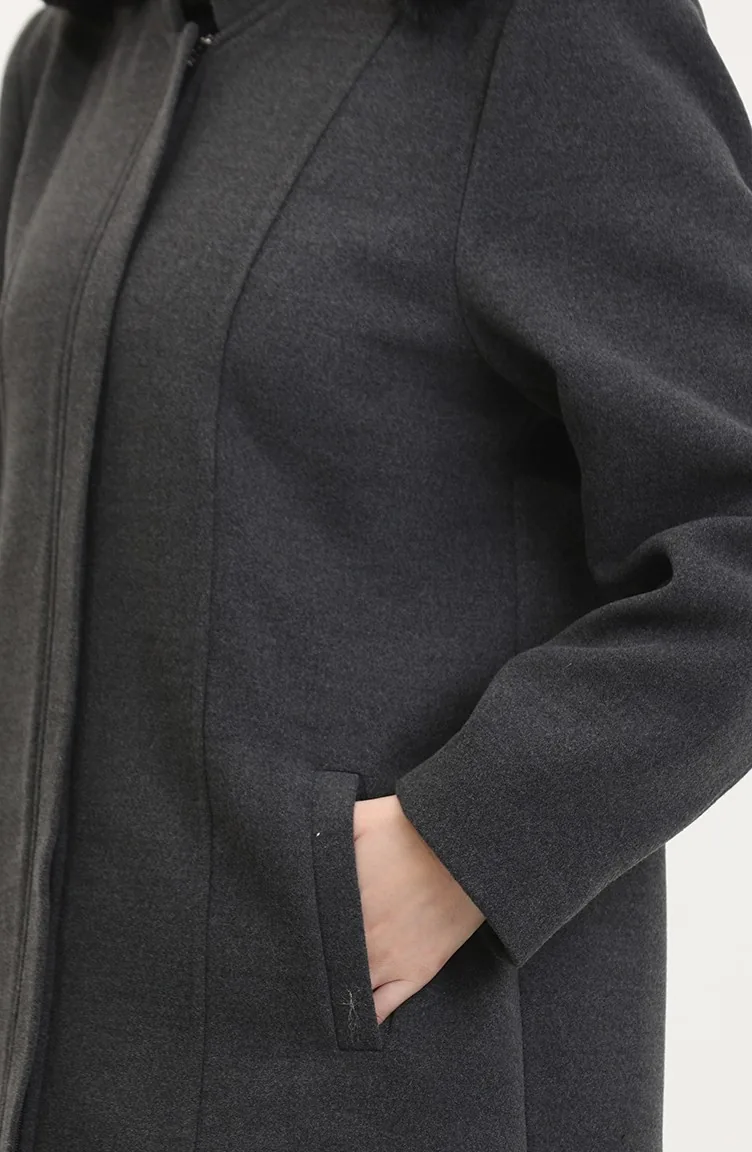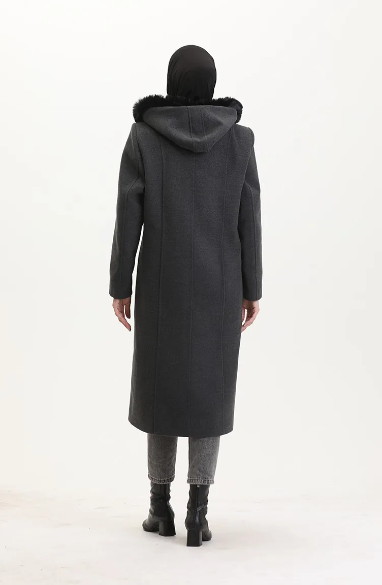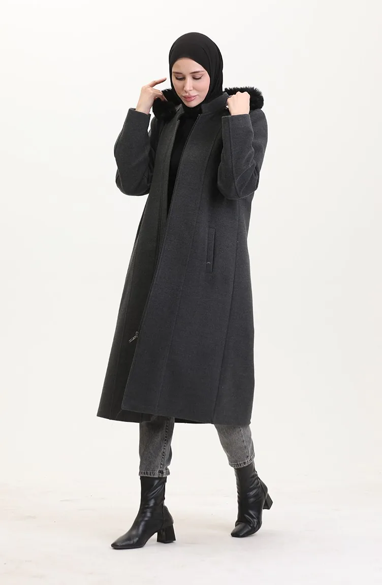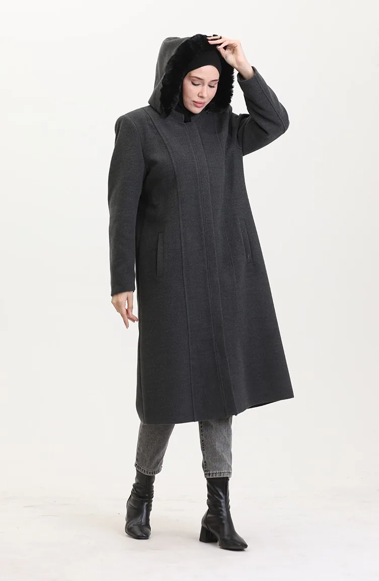 Büyük Beden Kapüşonlu Gizli Fermuarlı Kaban 5074-04 Koyu Gri