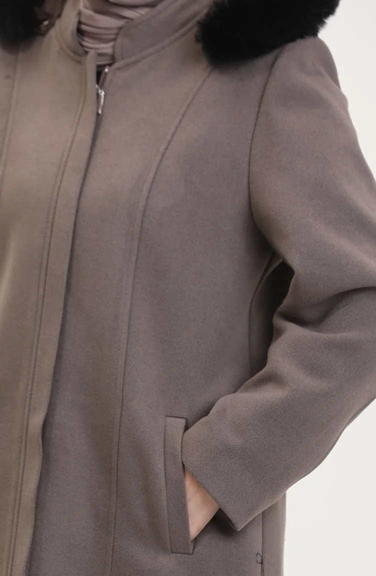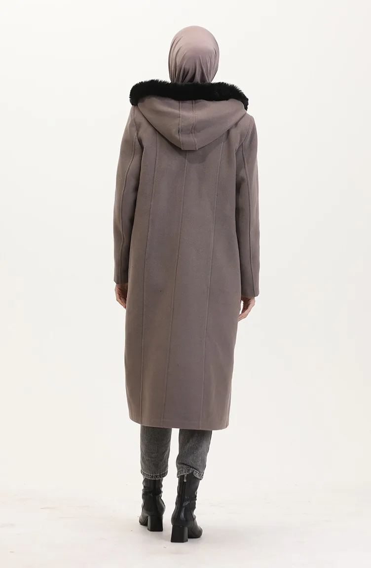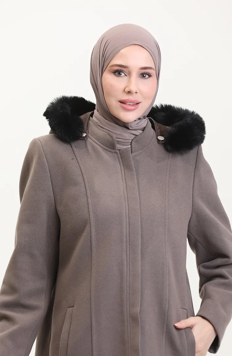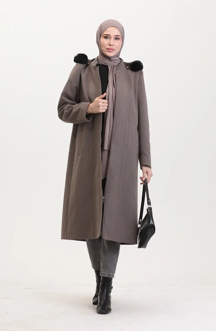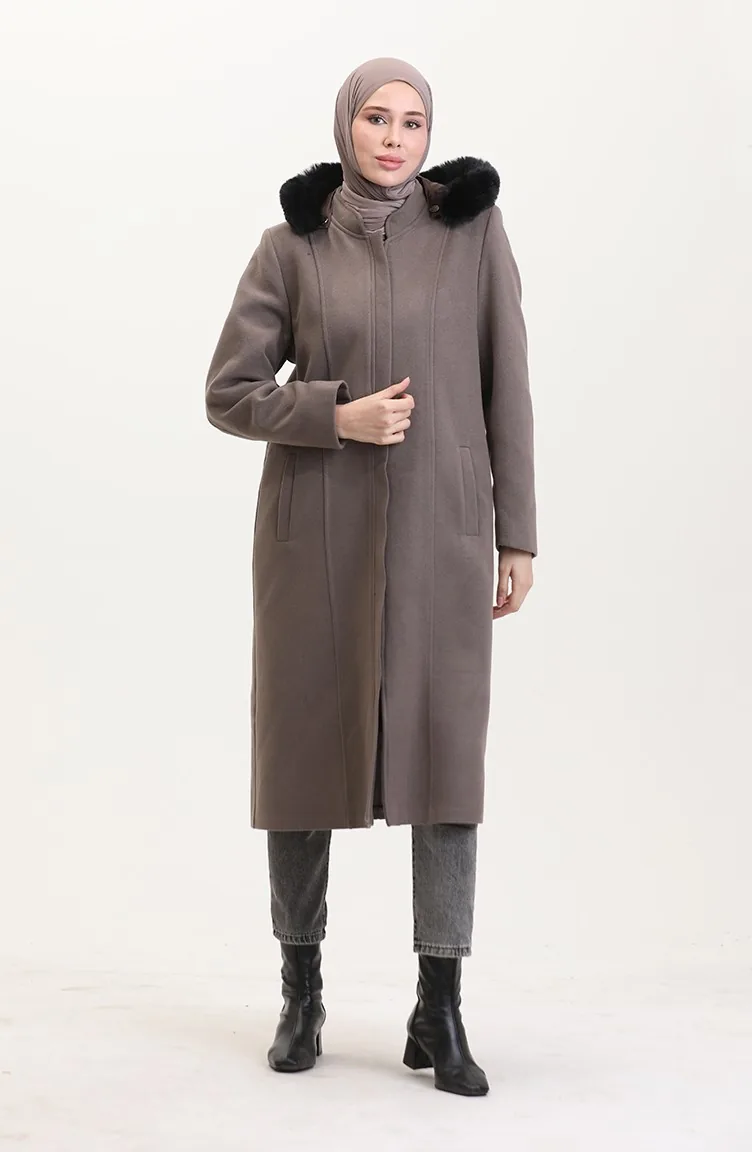 Büyük Beden Kapüşonlu Gizli Fermuarlı Kaban 5074-05 Vizon