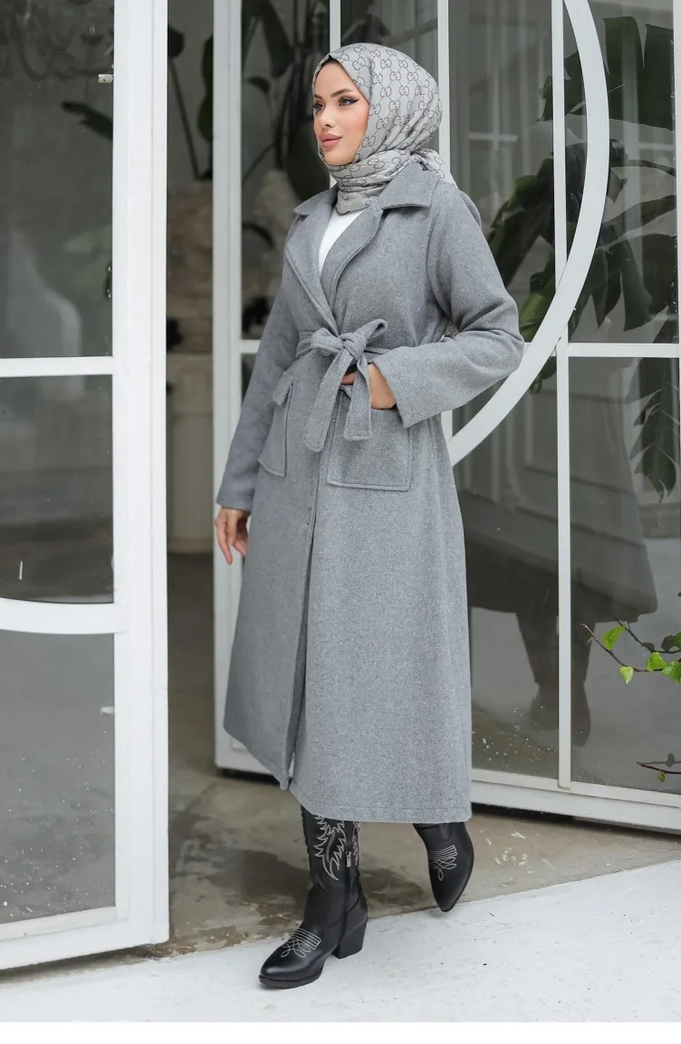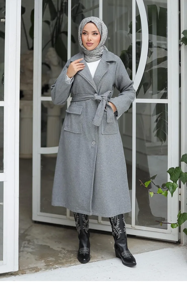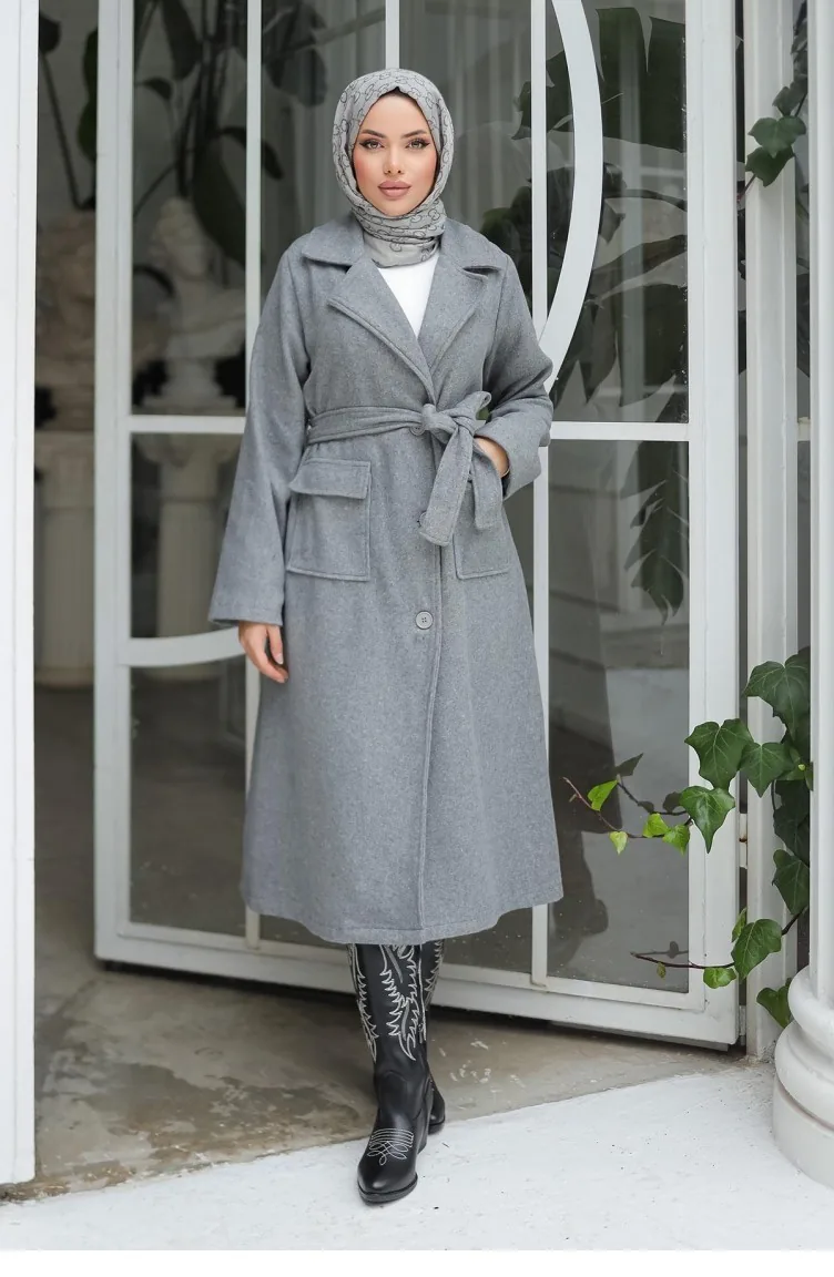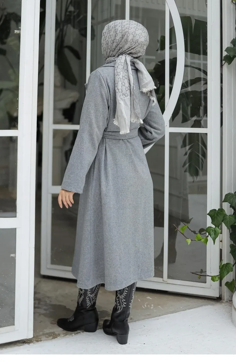 Gri renktedir. Polyester kumaş. Sade. Kışlık. Büyük beden seçeneği mevcuttur.
