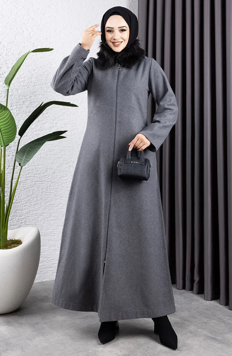 Kürk Yaka Kaşe Kaban 2060-05 Gri