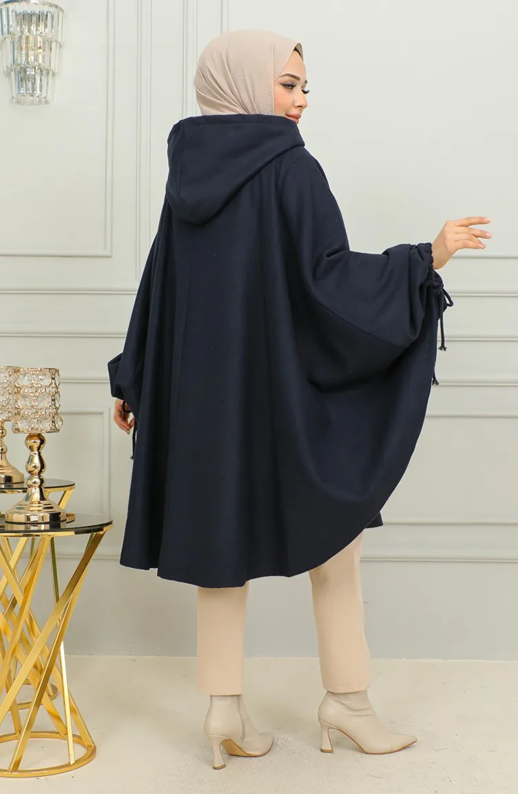 Kapüşonlu Kaşe Panço 0505-02 Lacivert