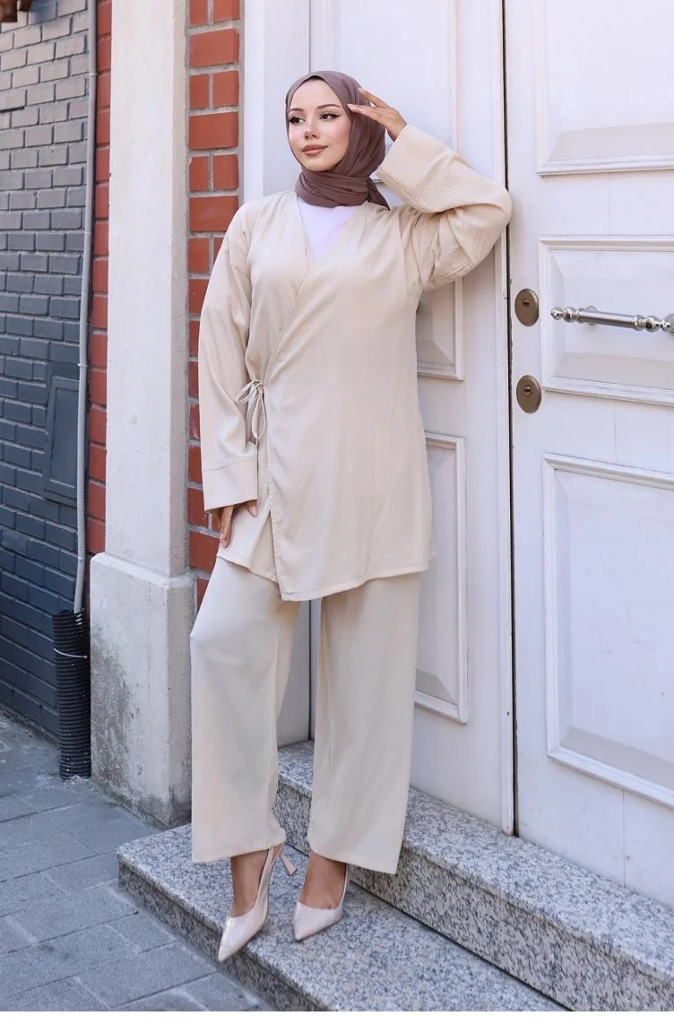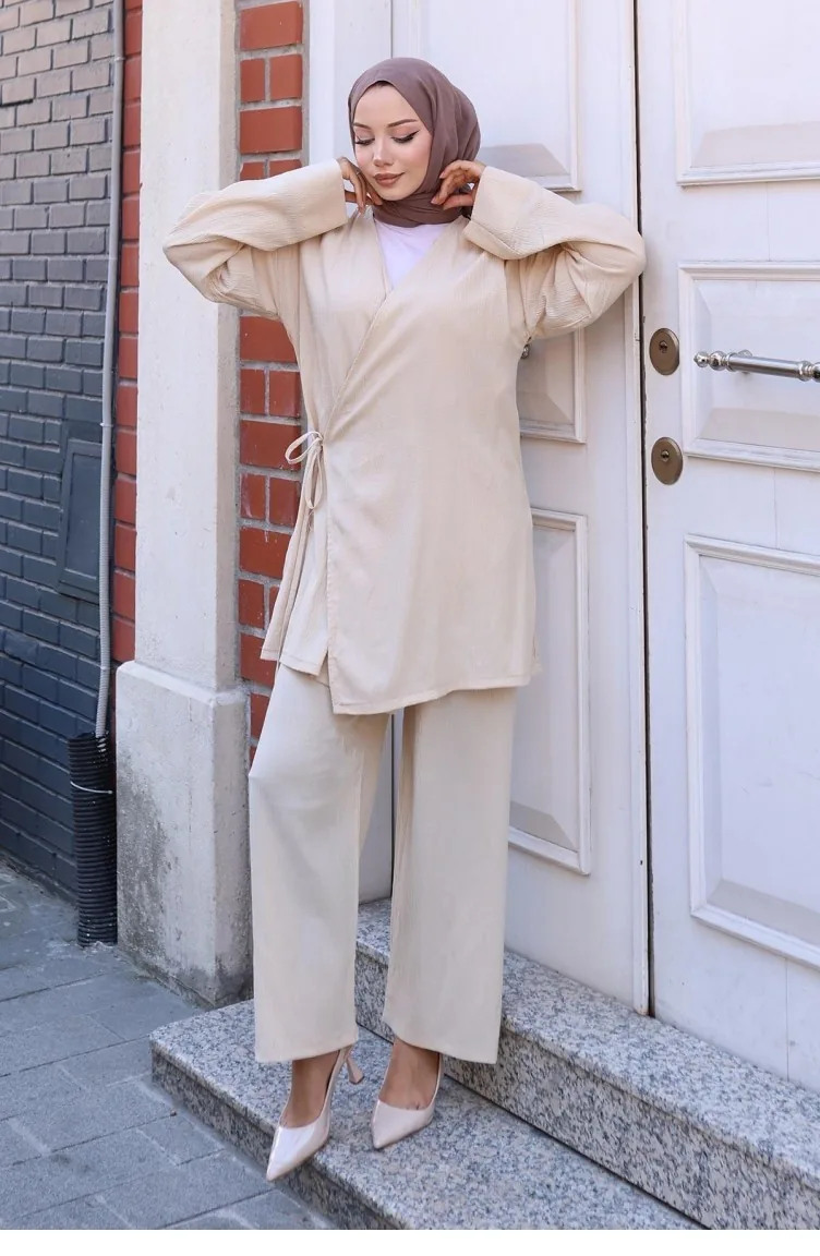 Bağlama Detaylı Kimono Takım Bej Özellikleri