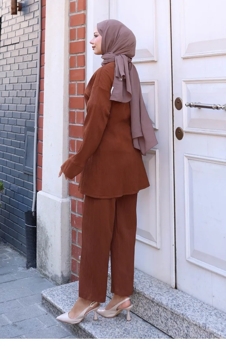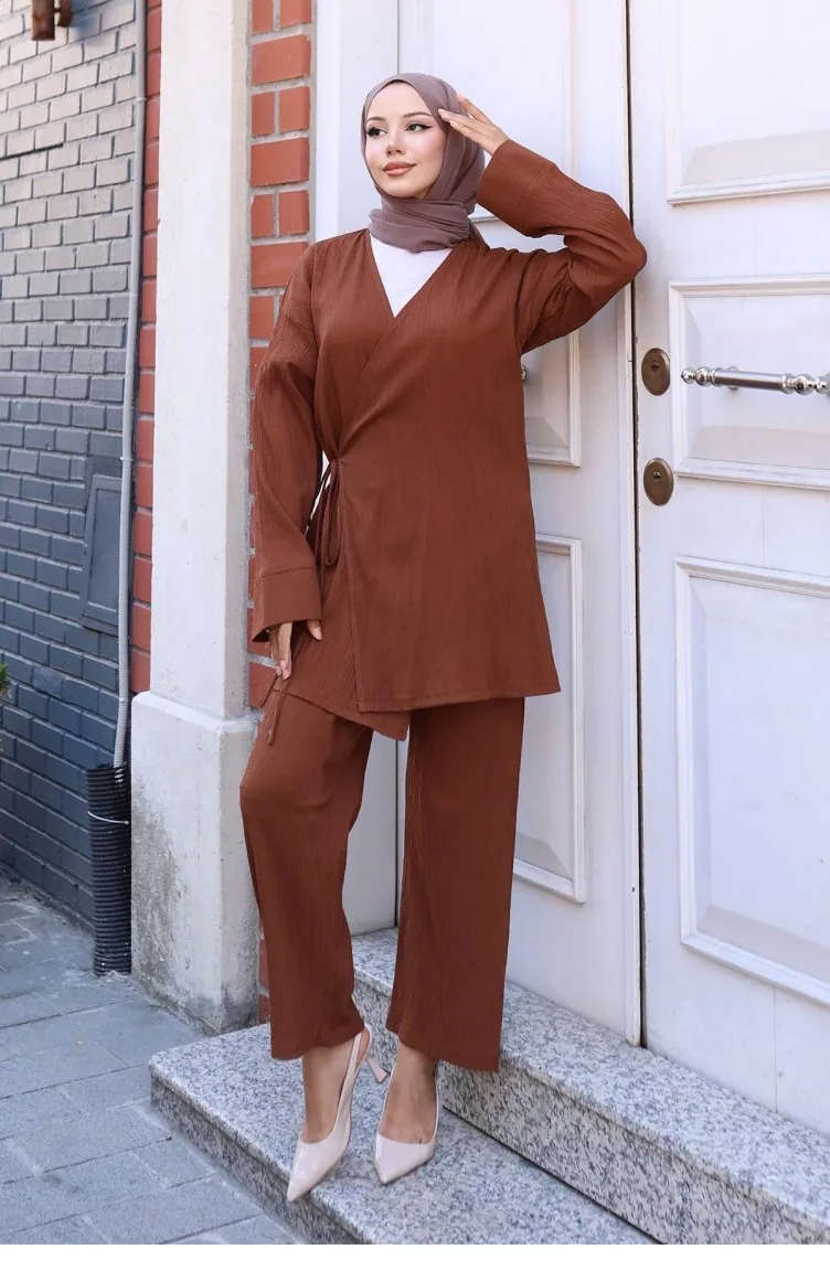 Bağlama Detaylı Kimono Takım Kahverengi Özellikleri