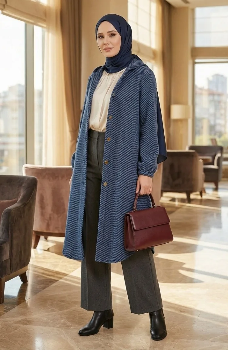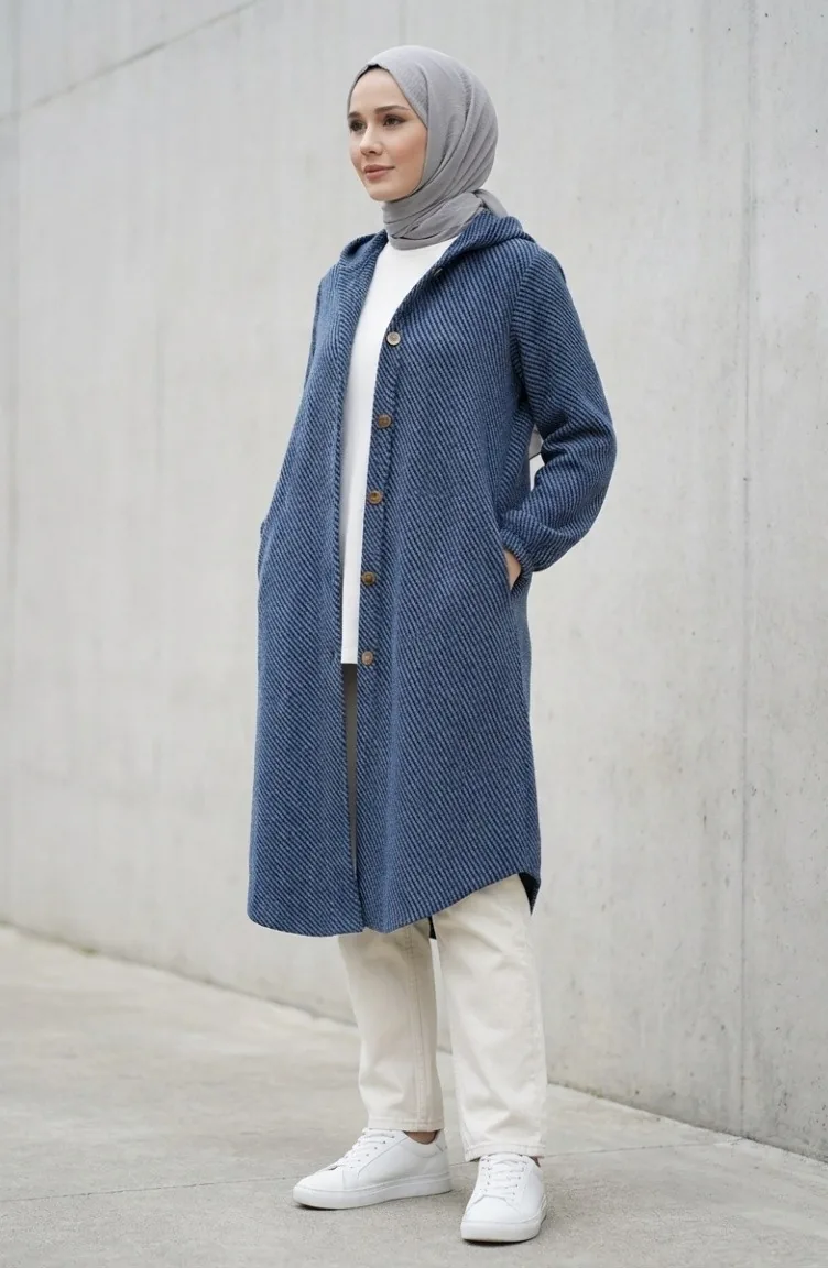 Yeni sezonun en dikkat çeken dış giyim parçalarından biri olan bu kap, modern tesettür giyim standartlarını konforla birleştiriyor. Kış ve sonbahar aylarının sert hava koşullarına karşı koruma sağlayan yoğun dokulu kumaşı, gün boyu sıcak kalmanıza yardımcı olur. Kendinden dokulu yüzeyi, ürüne derinlik katarak sıradan bir dış giyim parçasından daha fazlasını sunar.Kumaş Özelliği: Yüksek kaliteli, nefes alabilen ve ısıyı hapseden özel dokuma kumaştan üretilmiştir.Tasarım Detayları: Pratik kullanım sağlayan sabit kapüşon yapısı, ön boydan düğme kapama ve bilekleri kavrayan elastik manşet detayları ile tasarlanmıştır.Kalıp ve Kesim: Rahat kesimi sayesinde farklı vücut tiplerine uyum sağlar, hareket özgürlüğünü kısıtlamaz.Kombin Önerisi: Jean pantolonlar ve deri botlarla spor bir görünüm yakalayabileceğiniz gibi, kumaş pantolon ve şallarla daha klasik bir silüet oluşturabilirsiniz.Modern çizgileri ve zamansız tasarımıyla muhafazakar stilinize güç katan bu model, gardırobunuzun en işlevsel parçası olmaya aday. İç göstermeyen yapısı ve ideal boyu ile her ortamda güvenle tercih edilebilir.