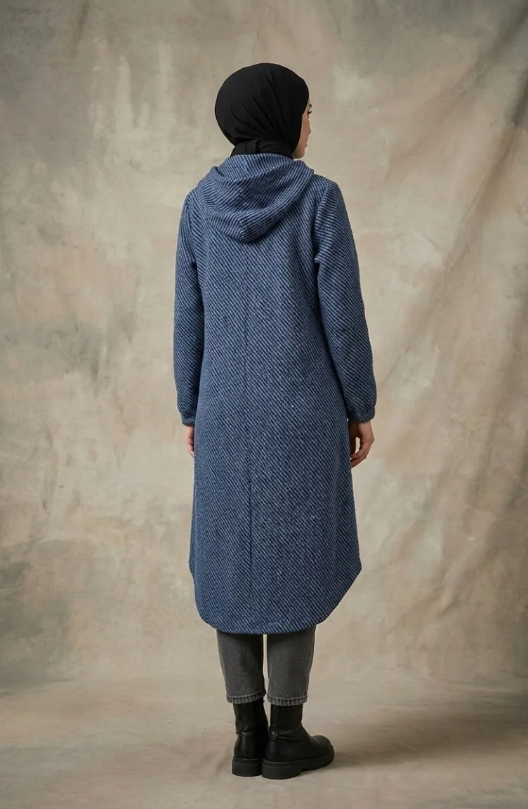 Kapüşonlu Düğmeli Kaşe Kap 0201-14 Mavi