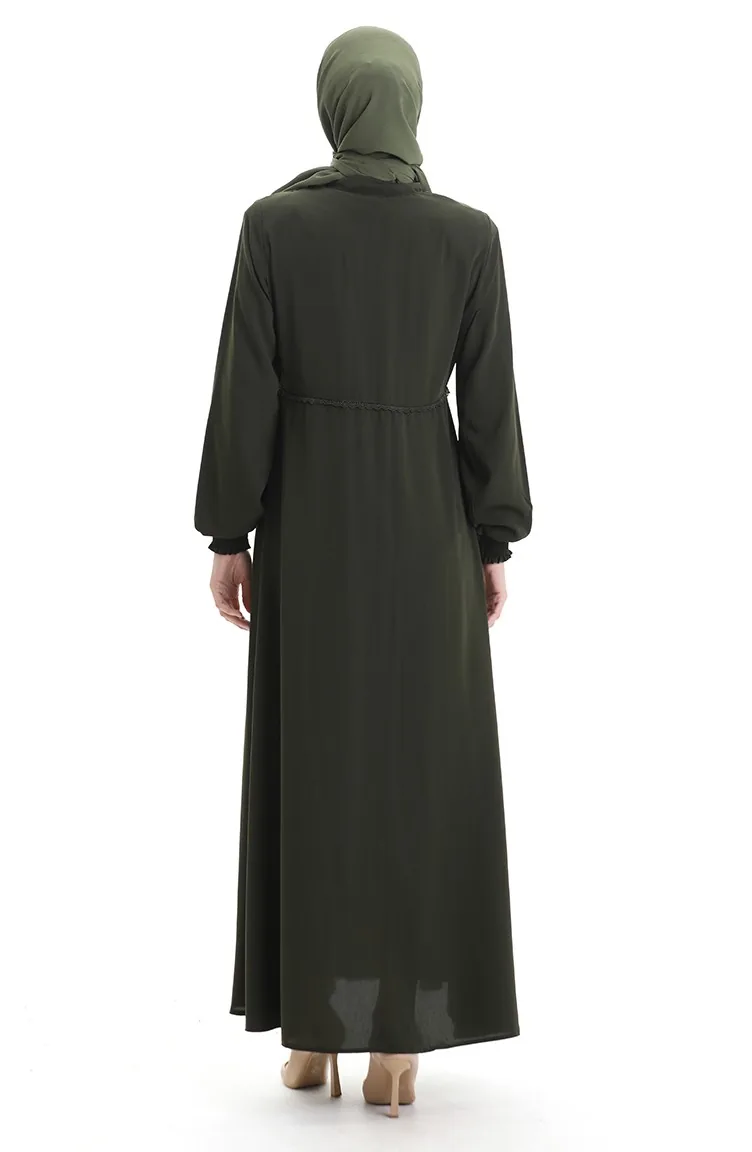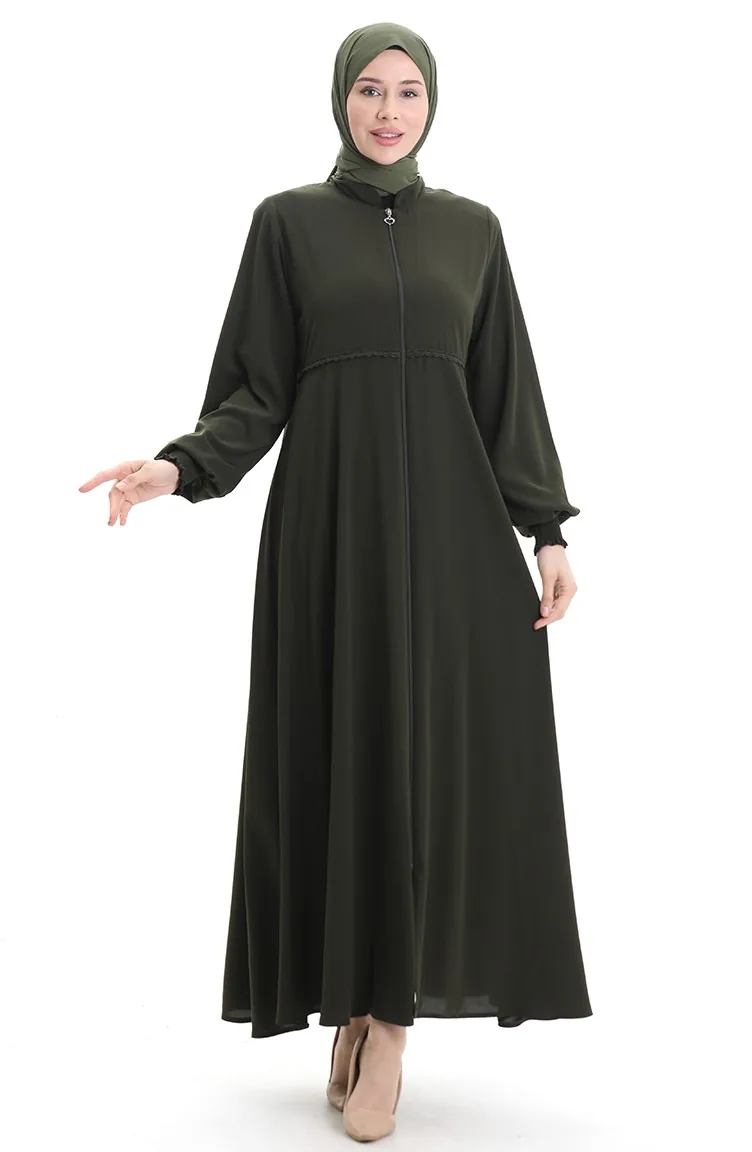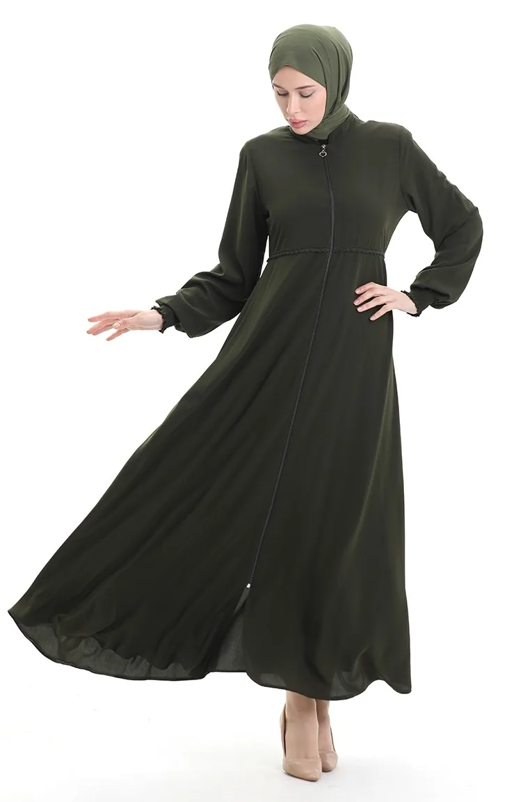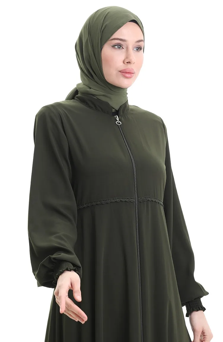 Büyük Beden Nakışlı Fermuarlı Ferace 5079-04 Haki