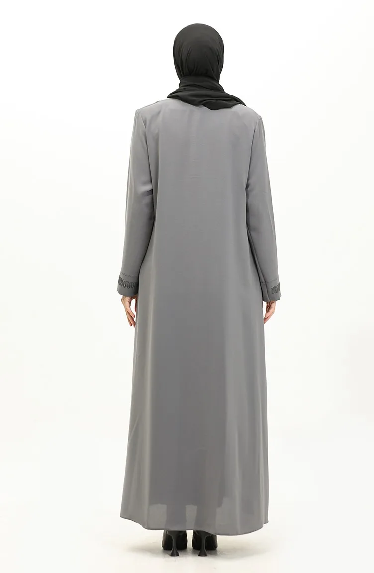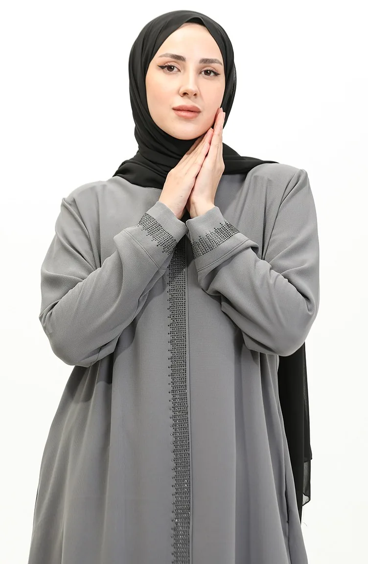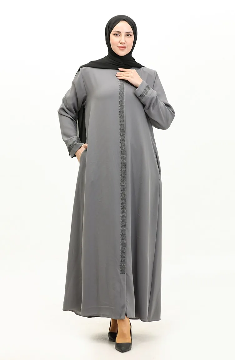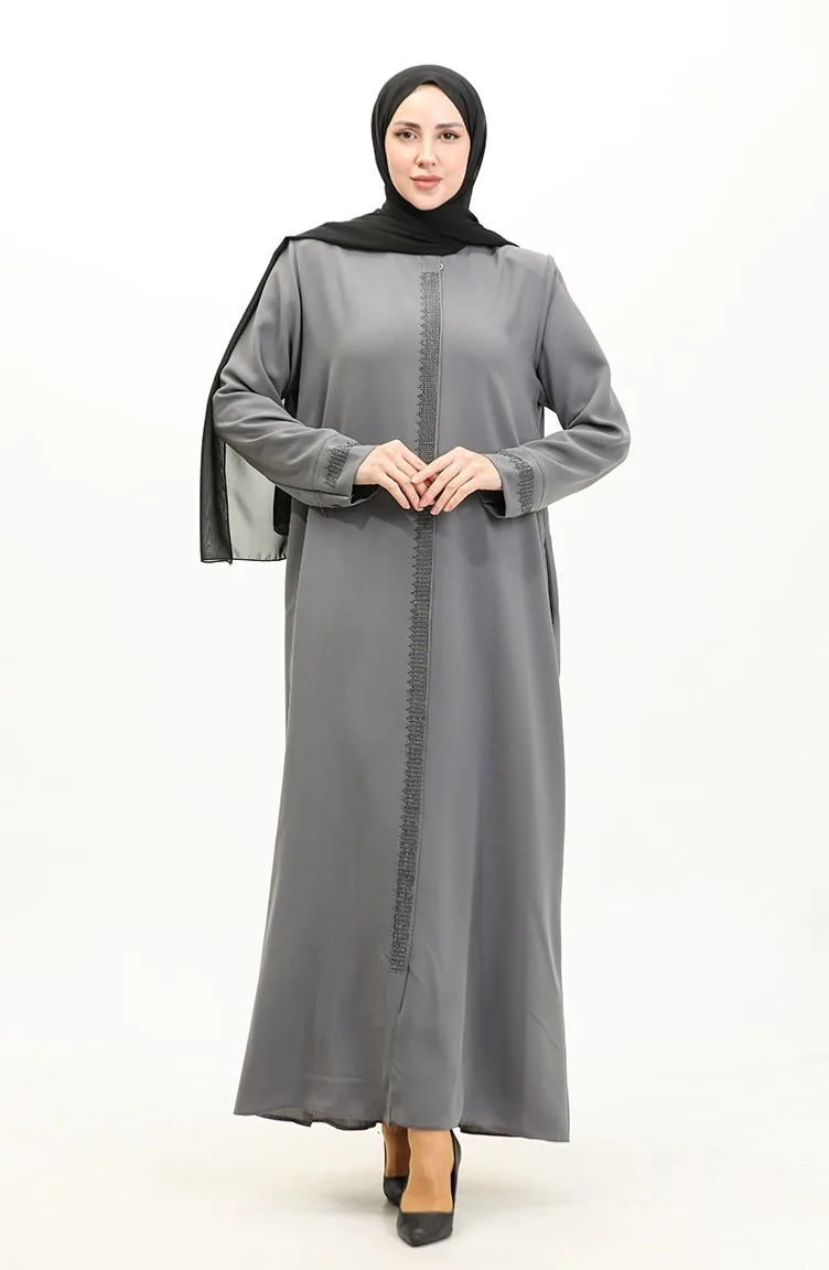 Büyük Beden Taş Baskılı Ferace 5067-05 Gri