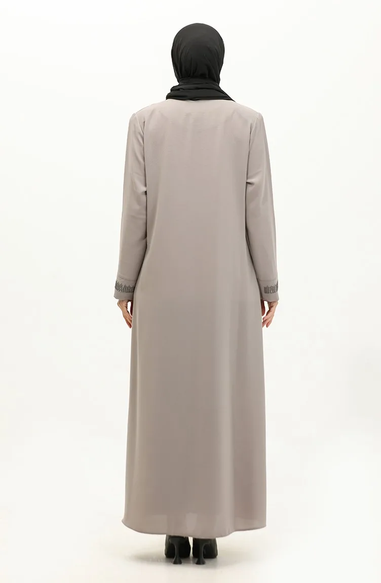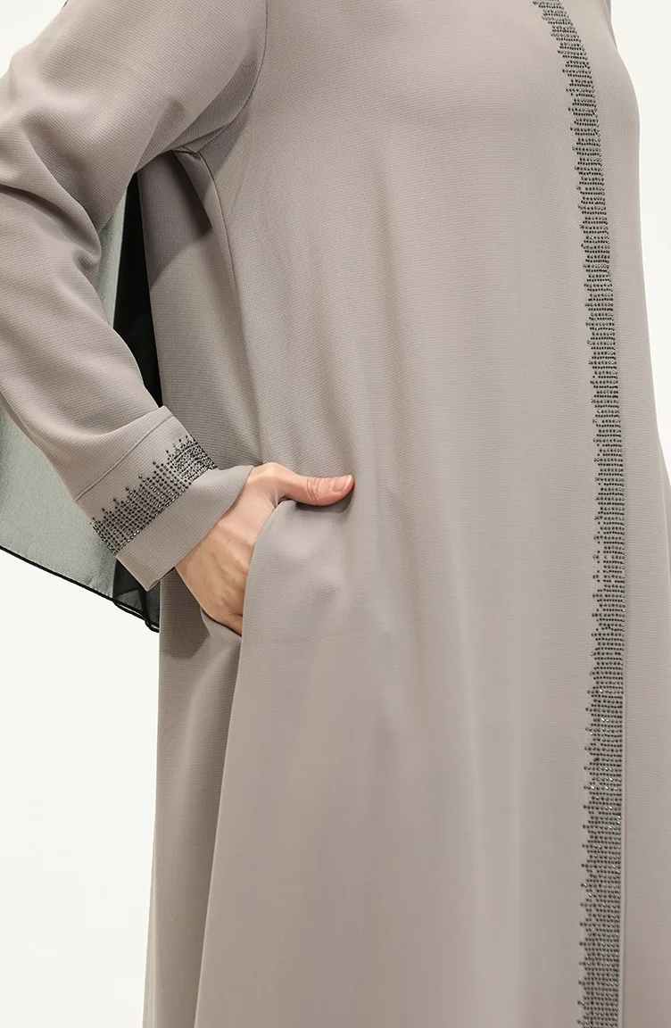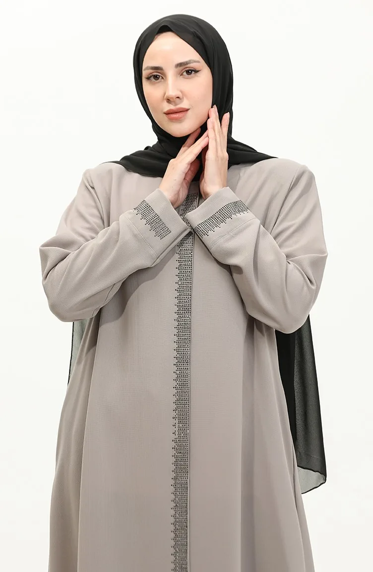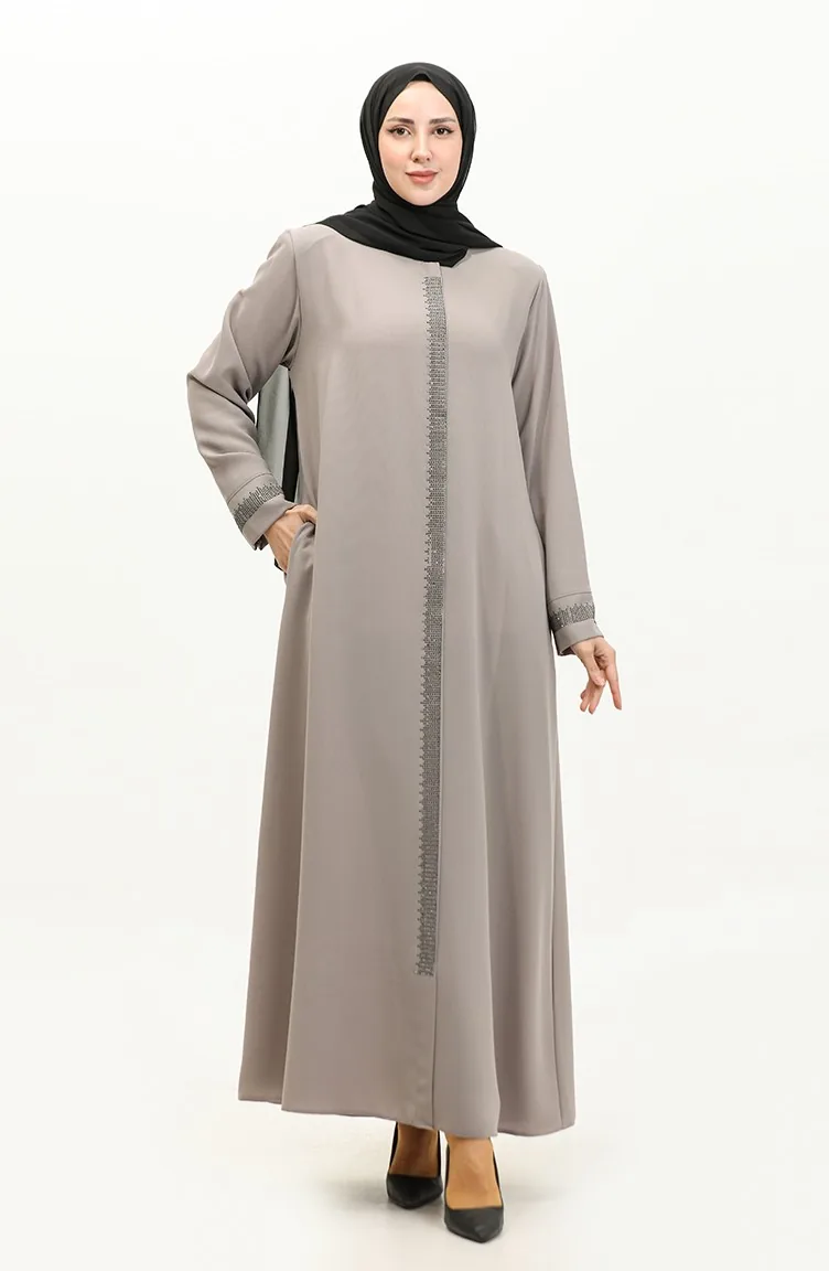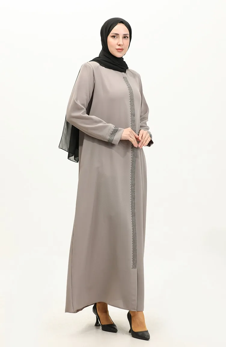 Büyük Beden Taş Baskılı Ferace 5067-07 Vizon