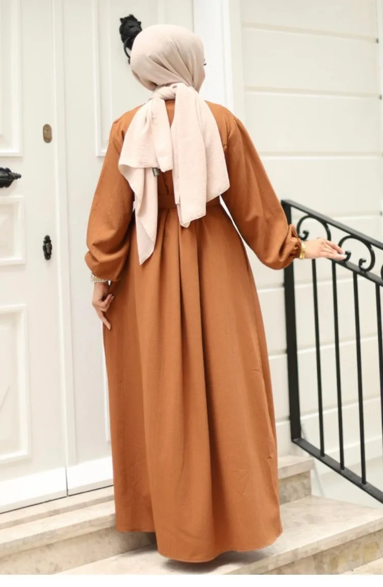 Kahverengi renktedir. Polyester kumaş. Sade. 4 Mevsim tercih edebilirsiniz. Büyük beden seçeneği mevcuttur.