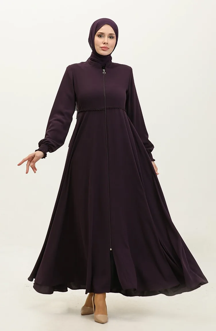Dantel Detaylı Mevlana Ferace 5069-04 Mürdüm