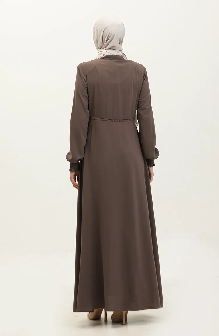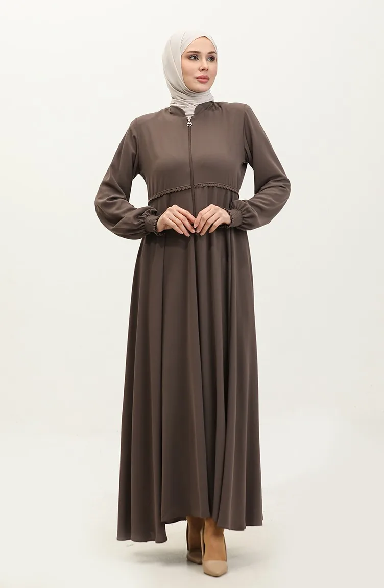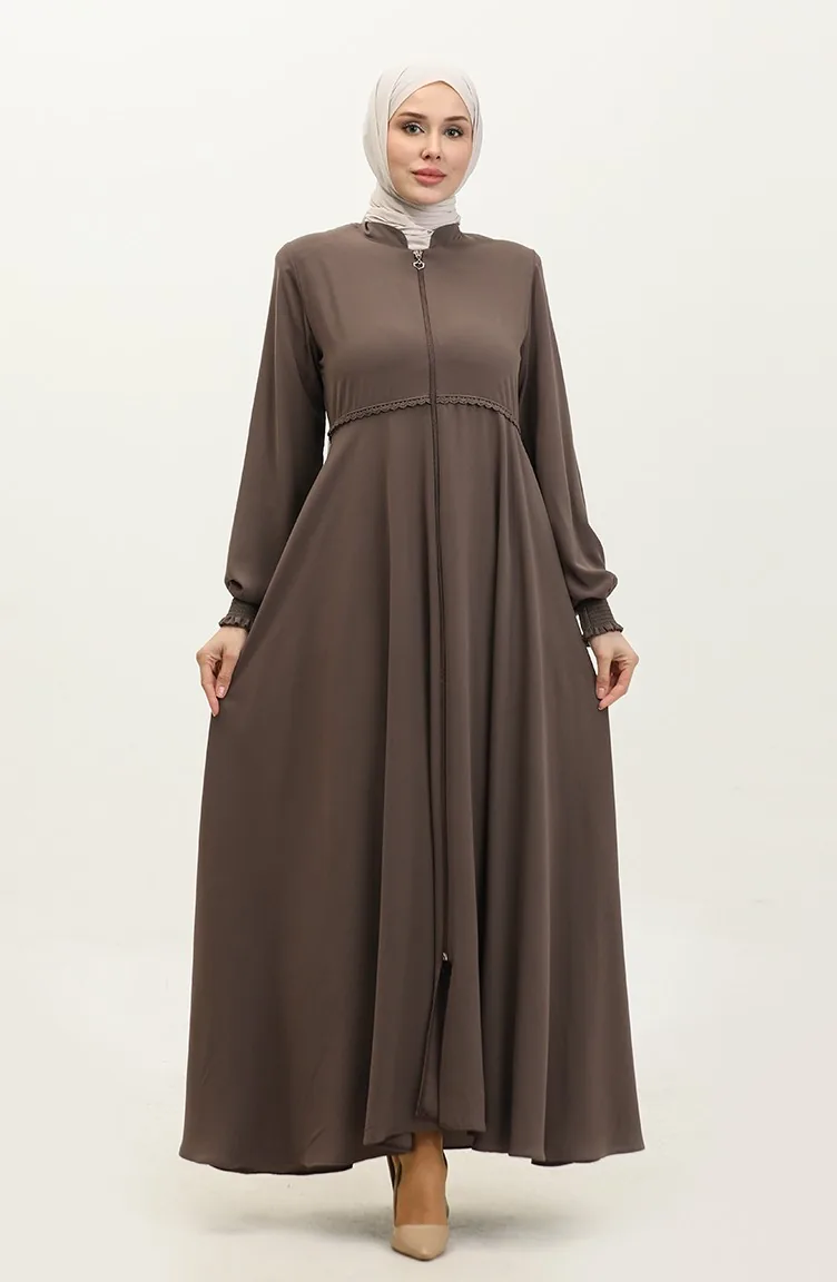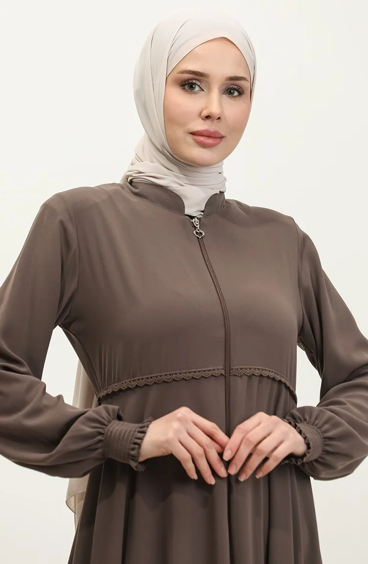 Dantel Detaylı Mevlana Ferace 5069-08 Sütlü kahve