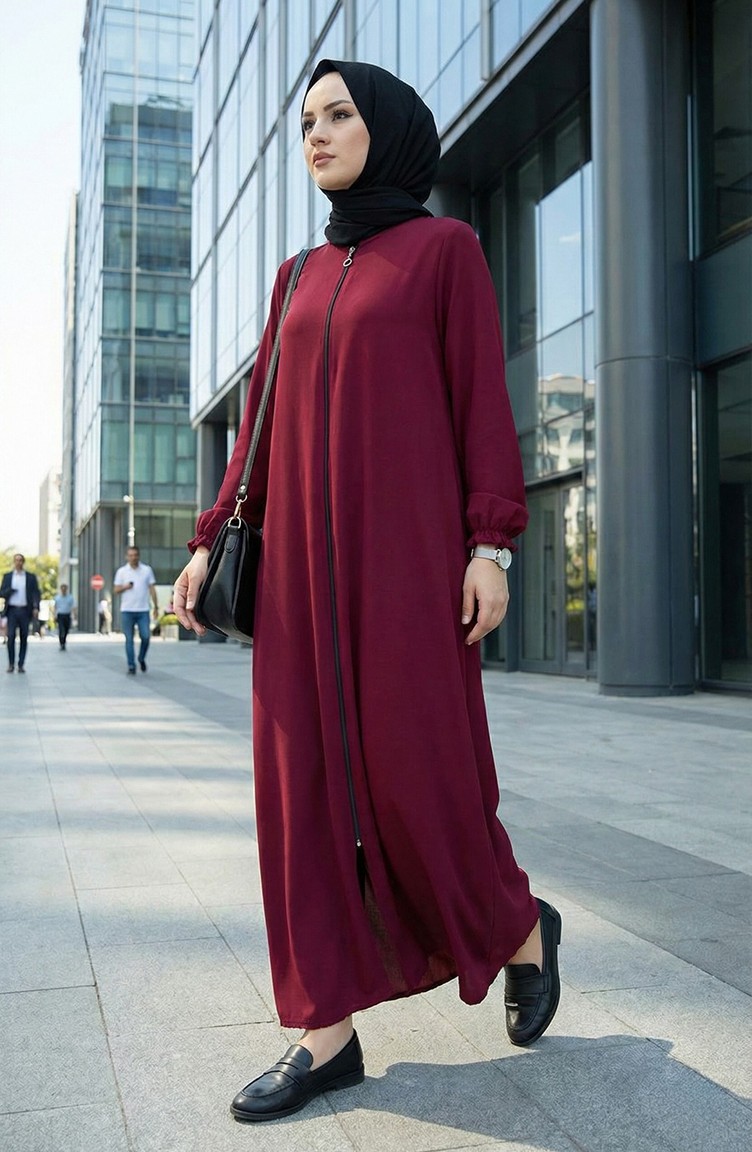 Fermuarlı Mevlana Ferace 4106-05 Bordo