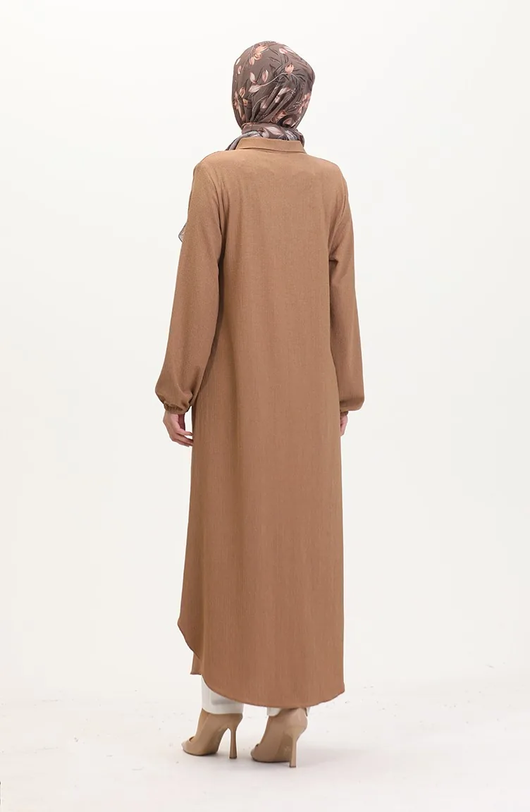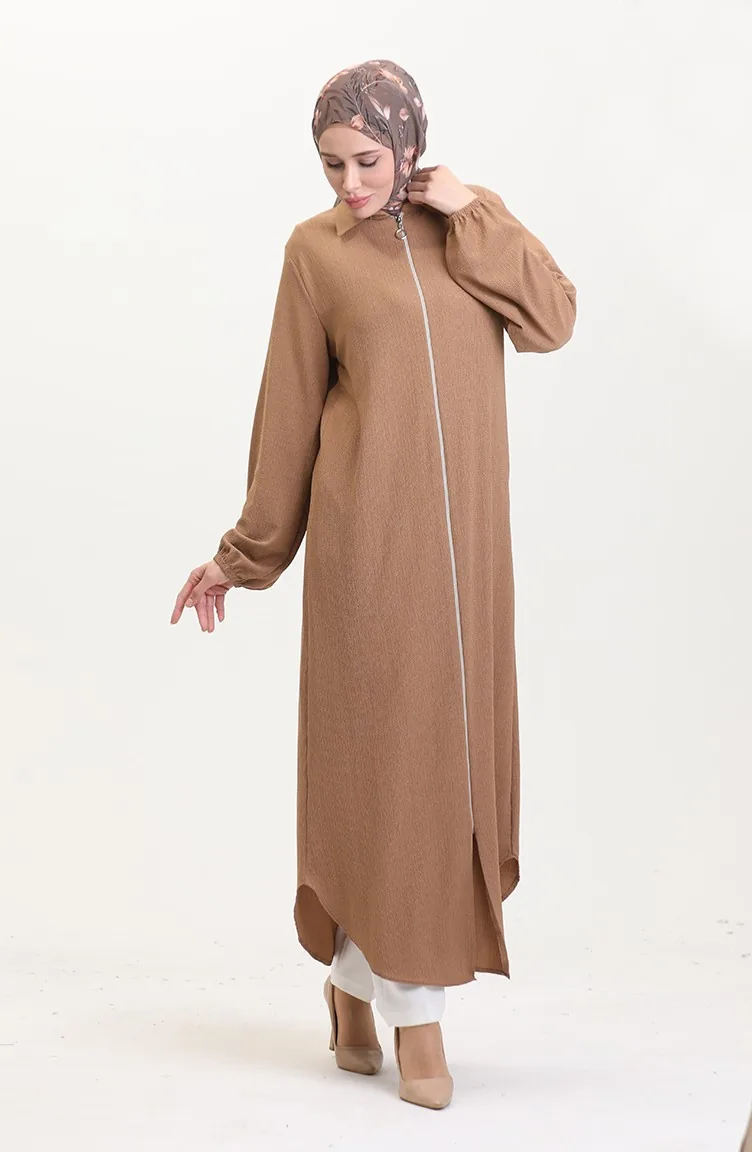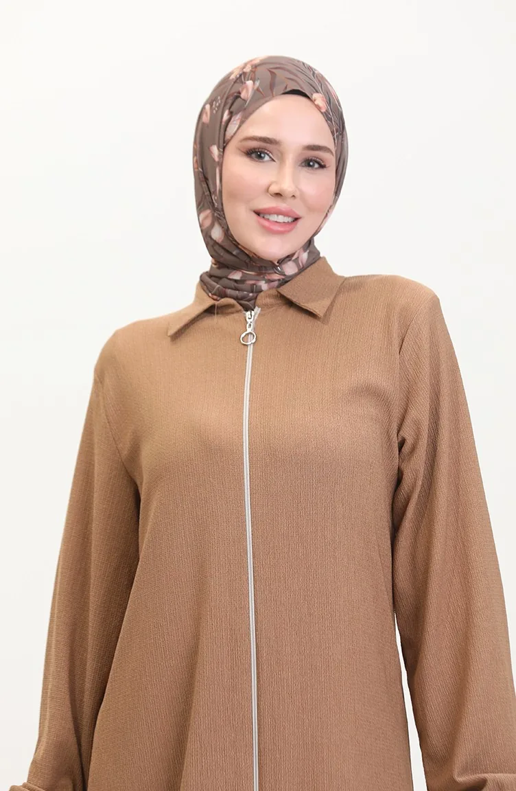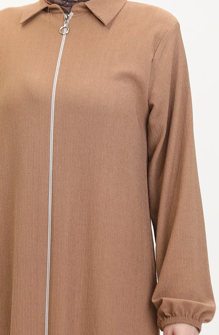 Yakalı Fermuarlı Ferace 1021-03 Vizon