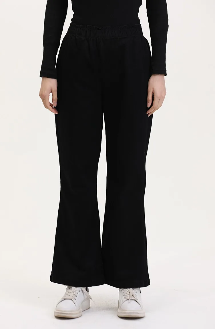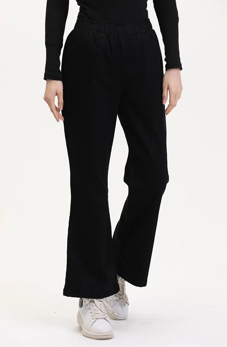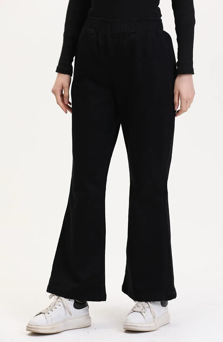 Beli Lastikli İspanyol Paça Pantolon 181612-01 Siyah