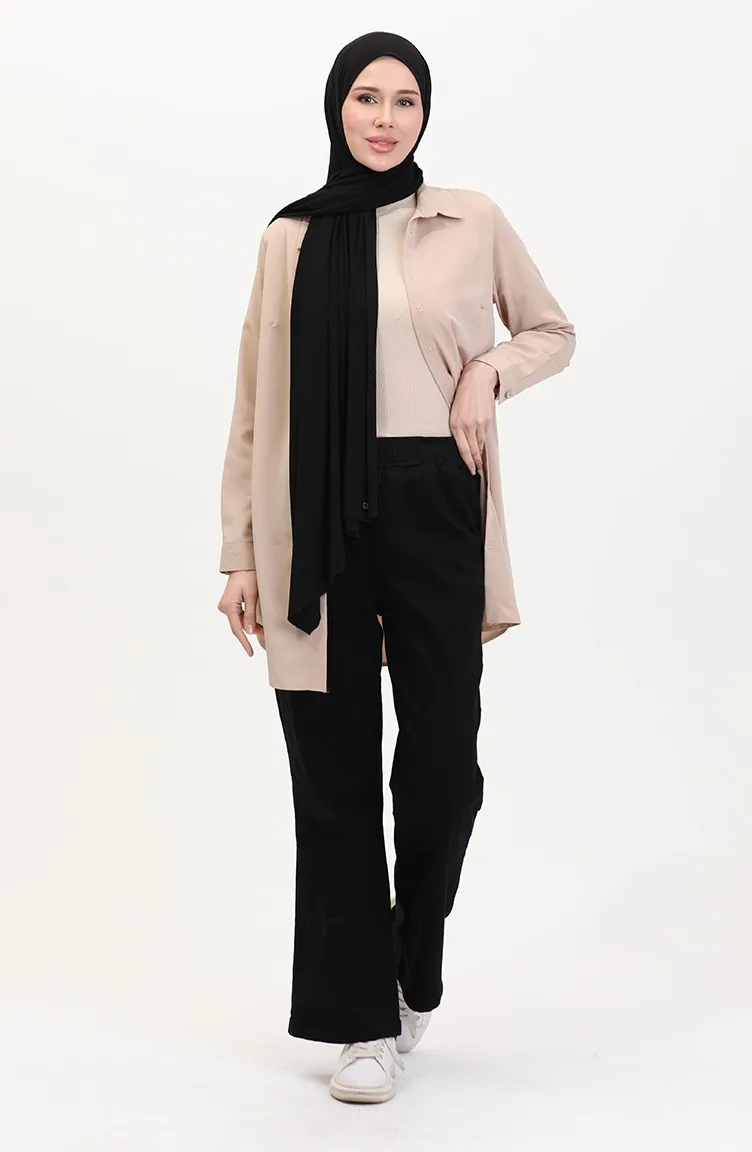 Siyah renktedir. Pamuk dokuma kumaş. Sade. Lastik detaylı. 4 Mevsim tercih edebilirsiniz. Standart.