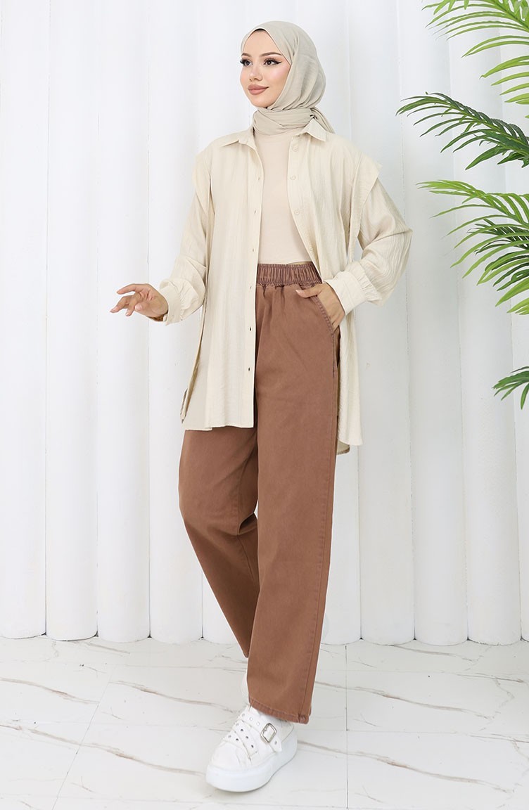 Beli Lastikli Kot Pantolon 9633-10 Koyu Kahverengi