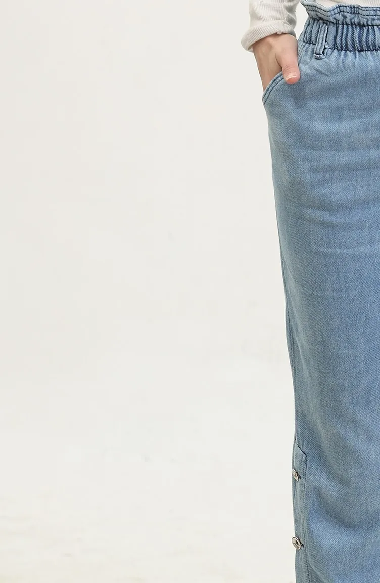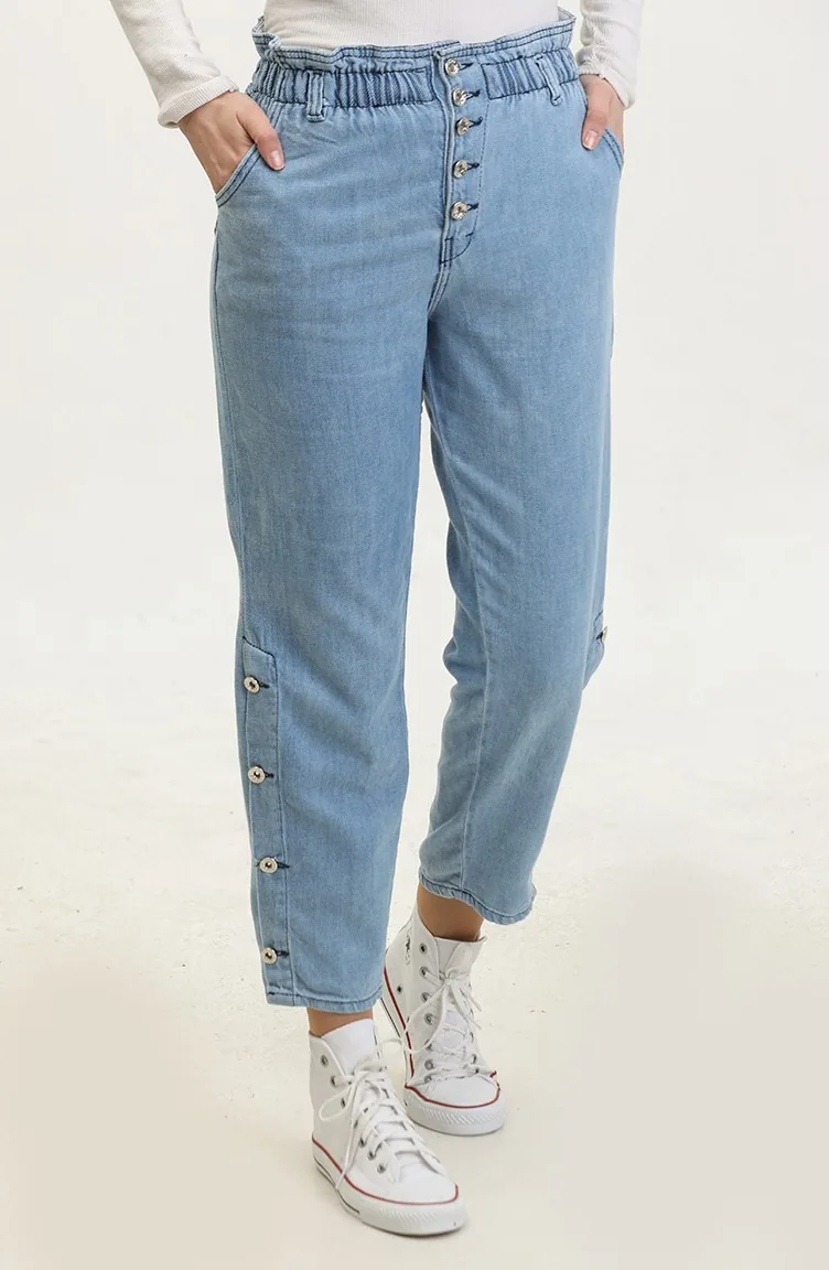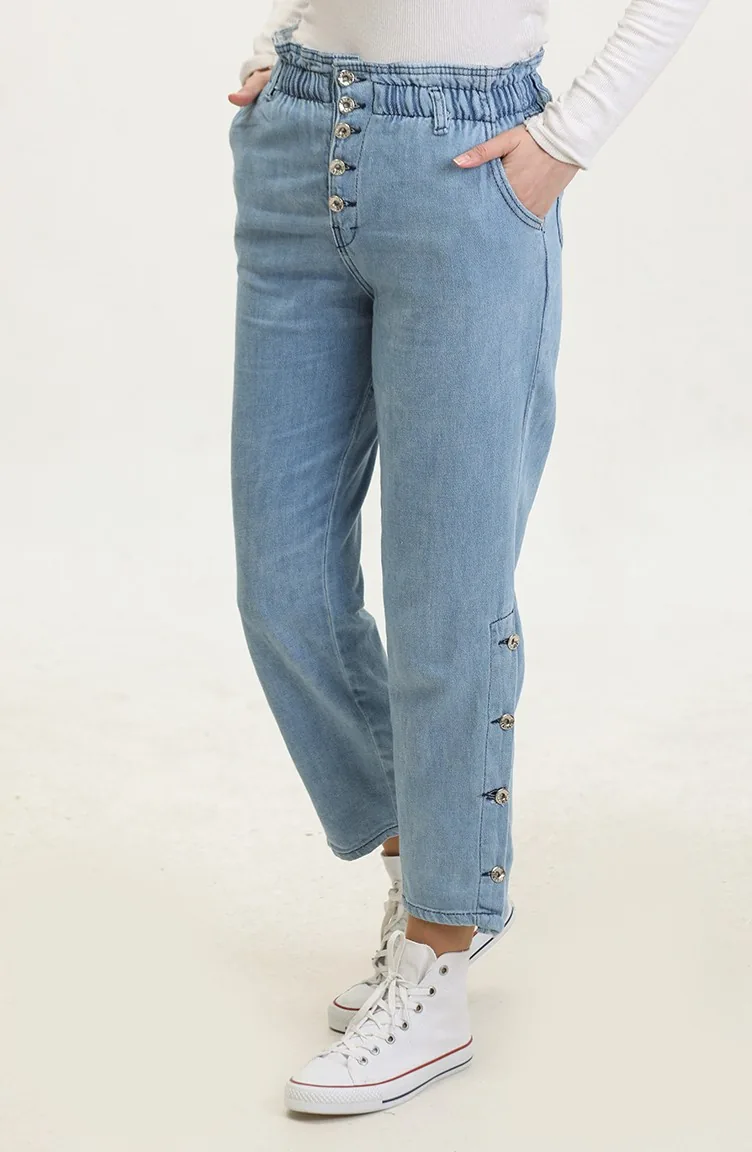 Düğmeli Mom Jean Kot Pantolon 3100131-01 Açık Mavi