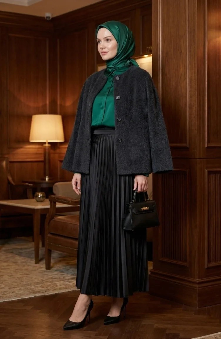 Sefamerve’nin kış koleksiyonunun en gözde parçalarından biri olan Düğmeli Atkılı Kürk Ceket, modern tasarımıyla tesettür giyimde şıklığı yeniden tanımlıyor. Yüksek kaliteli suni kürk kumaştan üretilen bu ceket, kışın dondurucu soğuklarında bile size eşsiz bir sıcaklık sunar. Ürünün en dikkat çekici özelliği, ceketle bütünleşik veya uyumlu tasarlanan atkı detayıdır; bu sayede ekstra bir aksesuar arayışına girmeden stilinizi tamamlayabilirsiniz. Öndeki şık düğme detayları, hem kullanım kolaylığı sağlar hem de tasarıma klasik bir hava katar. Geniş kalıbı ve rahat kesimi ile günlük kombinlerinizden özel davetlerinize kadar her ortamda tercih edebilirsiniz. Jean pantolonlar, triko elbiseler veya şık eteklerle mükemmel bir uyum yakalar. Kumaş yapısı dökülme yapmaz ve uzun ömürlü kullanım sunar. Sefamerve kalitesiyle sunulan bu kürklü mont, stil sahibi kadınların gardırobunda vazgeçilmez bir yer edinecek. Bakımı kolaydır ve hafif yapısı sayesinde gün boyu ağırlık hissi vermez.