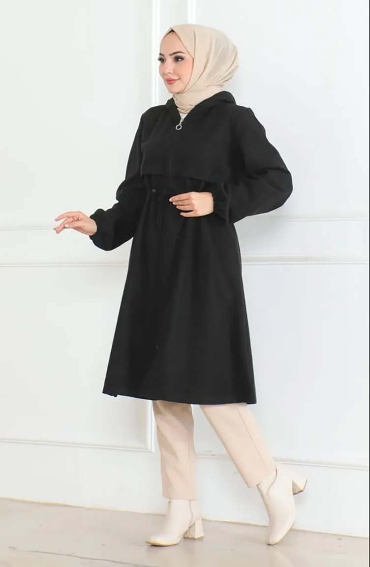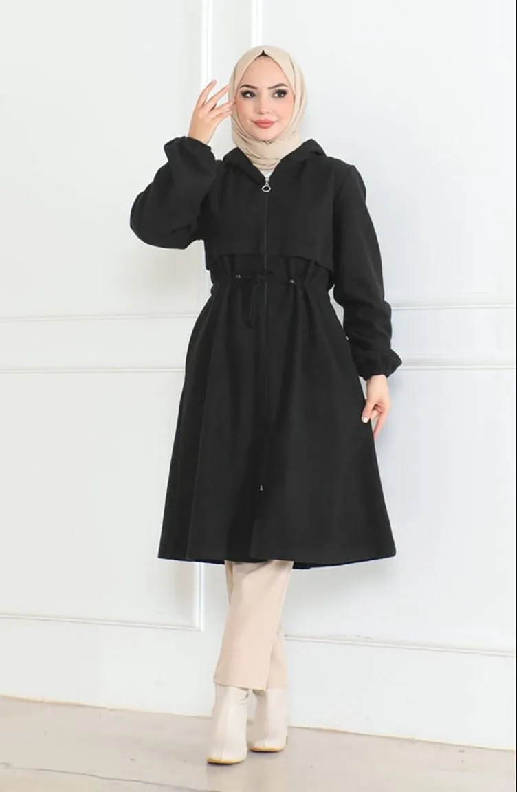 Black color is used. It is cachet fabric, you can use it easily in winter. It has a plain appearance. Zipper is used for easy handling. Designed from thick fabric. Plus size option available.