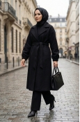It is cachet fabric, you can use it easily in winter. It has a plain appearance. The belt provides ease of use depending on the demand. It's made of elastic sleeves. Designed from thick fabric. Şık. Plus size option available.