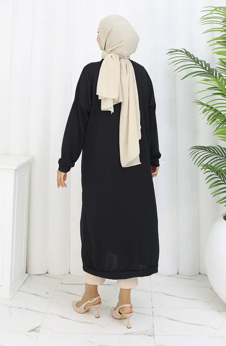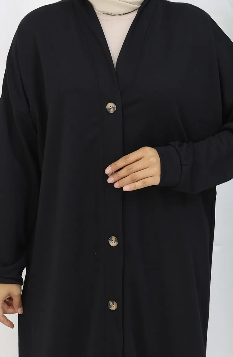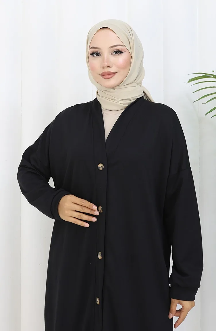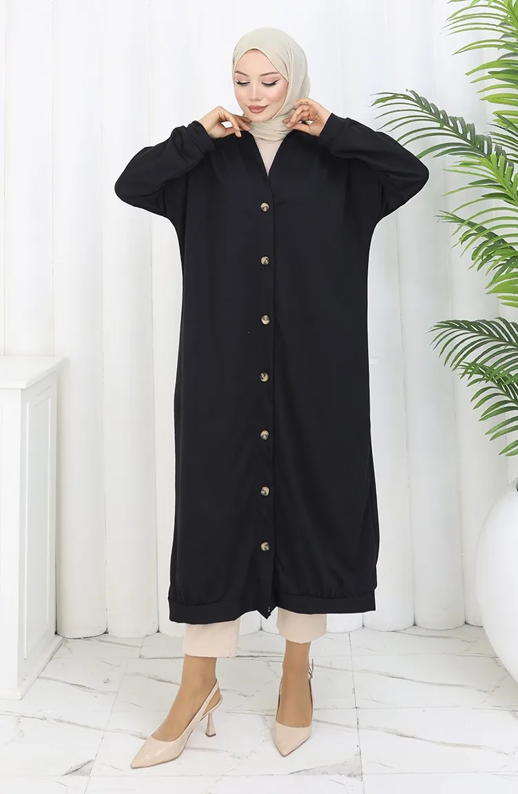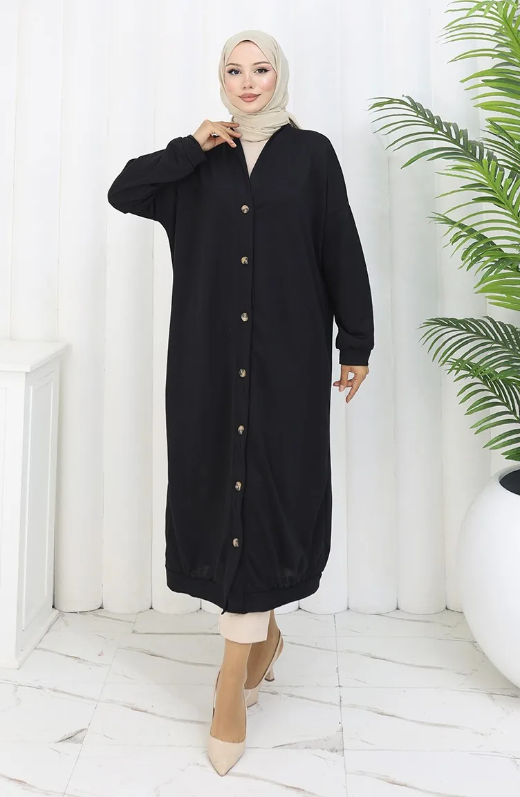 Black color is used. It has a plain appearance. Buttons have been used to make it easy to use. Suitable for 4 seasons. Plus size option available.