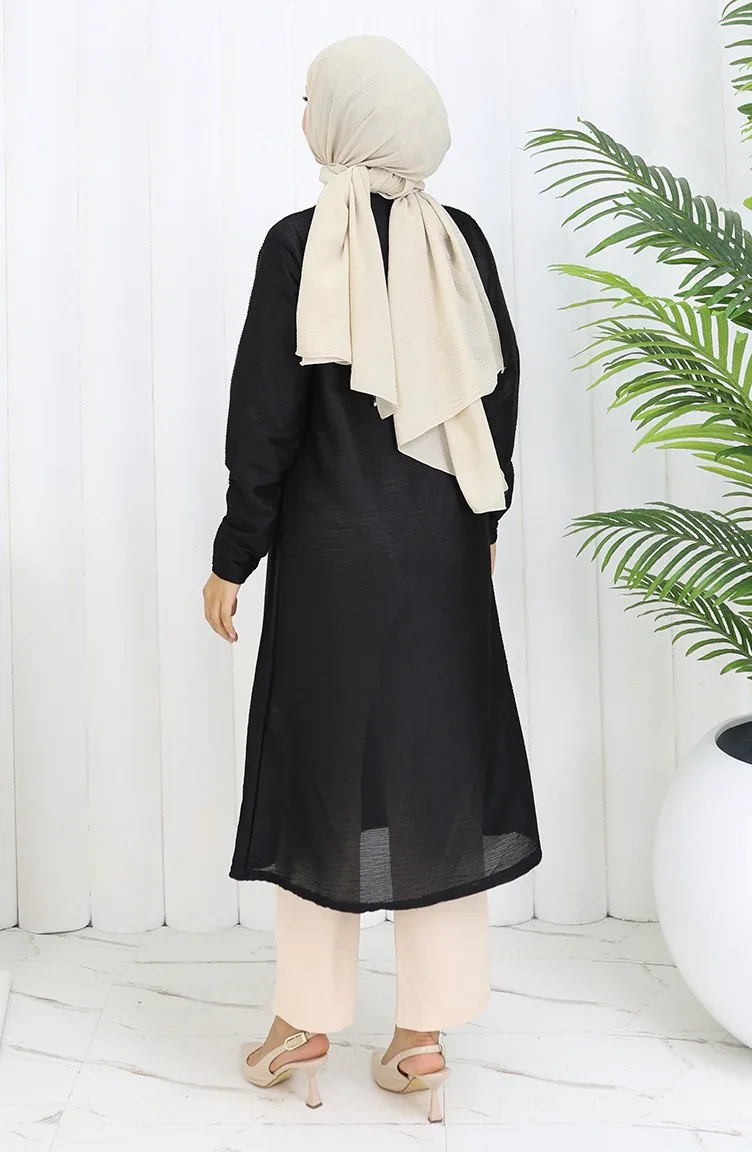 Effen Lange Seizoensvest In Zwart 8756-01 Zwart 8756-01
