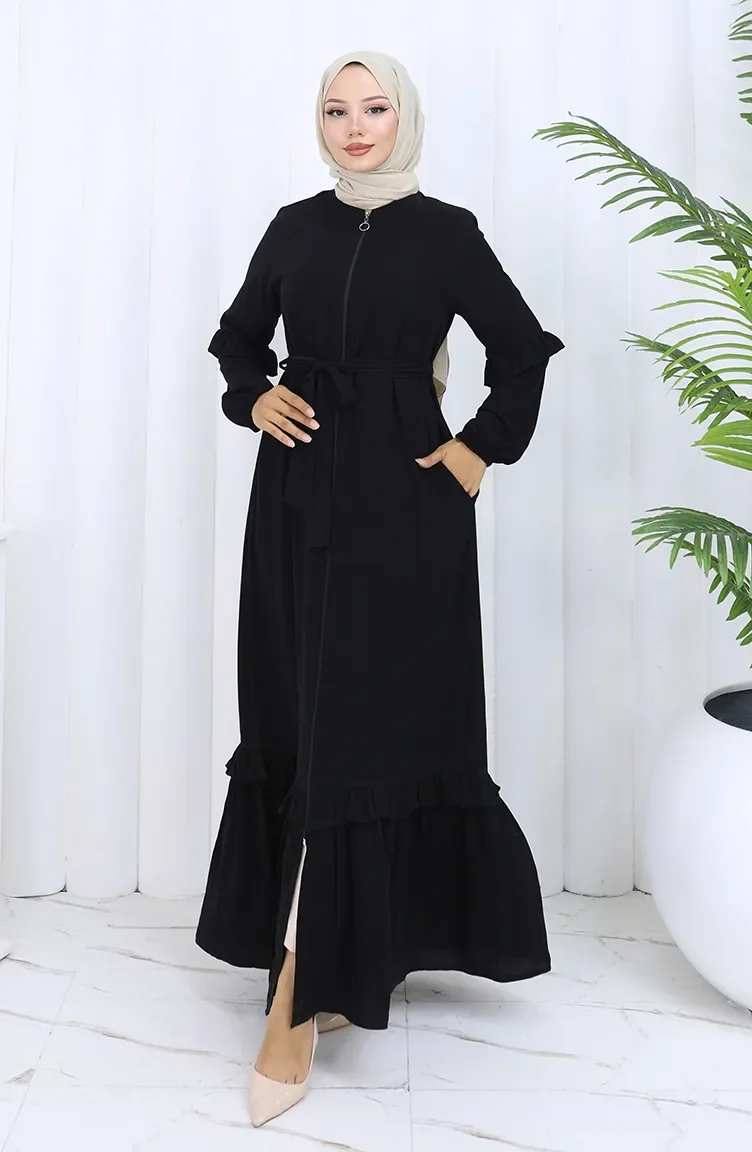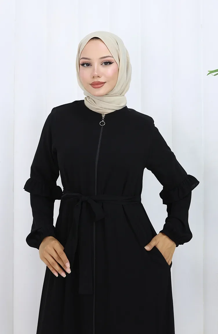Abaya Met Riem En Rits 6278-01 Zwart 6278-01