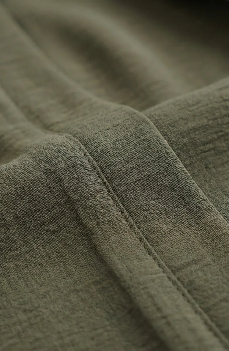 Light green color. Aerobin. It has a plain appearance. The hidden zipper is used. The Zero collar is preferred for all types of clothing. Suitable for 4 seasons. Plus size option available.