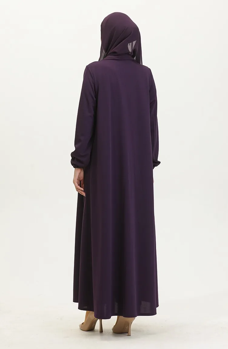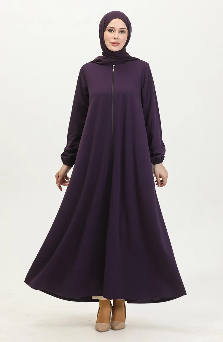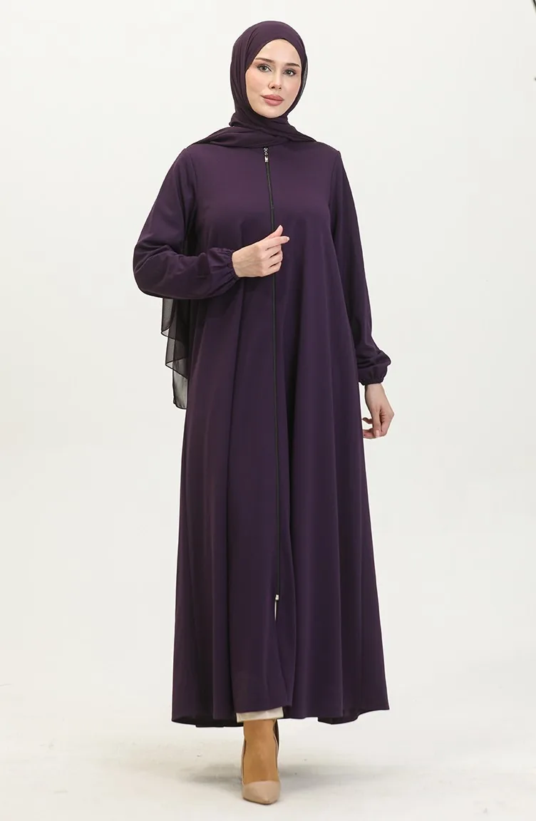 Dubbele Mevlana Abaya 2029-04 Met Ritssluiting Paars 2029-04