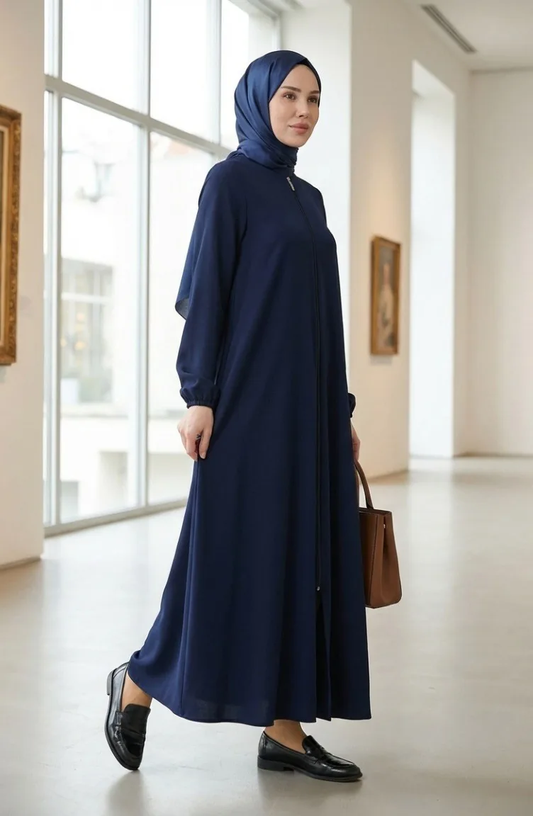 Dubbele Mevlana Abaya 2029-06 Marineblauw Met Ritssluiting 2029-06
