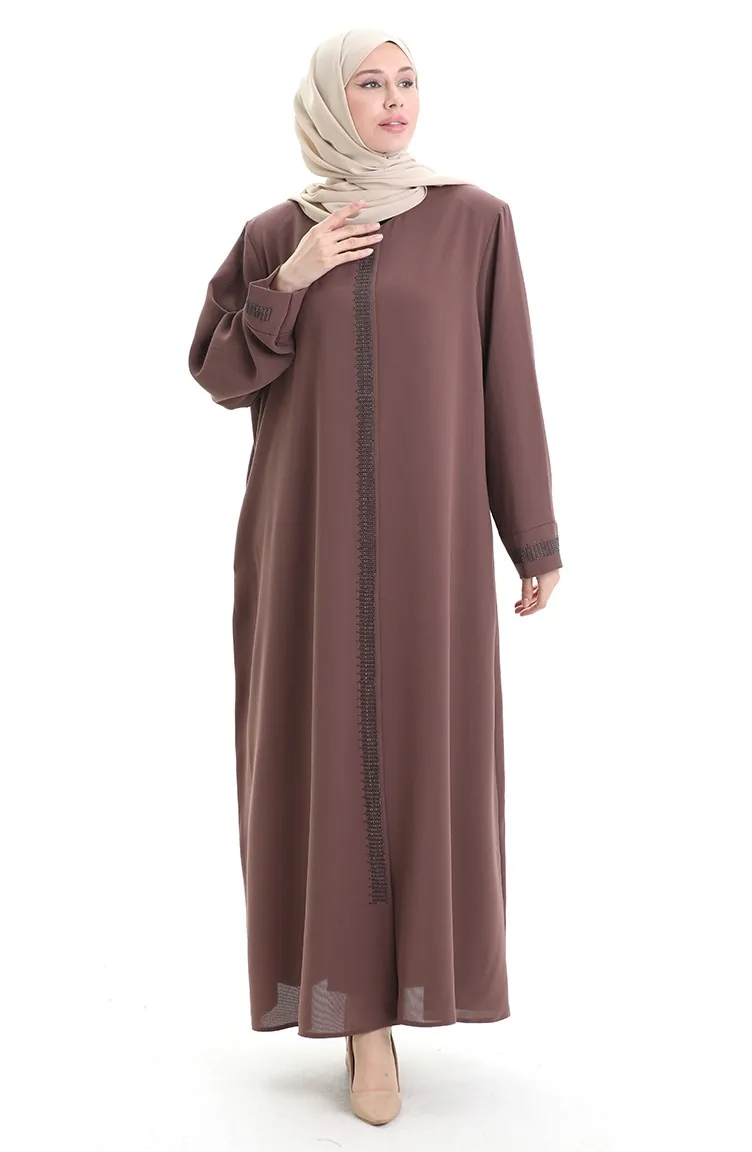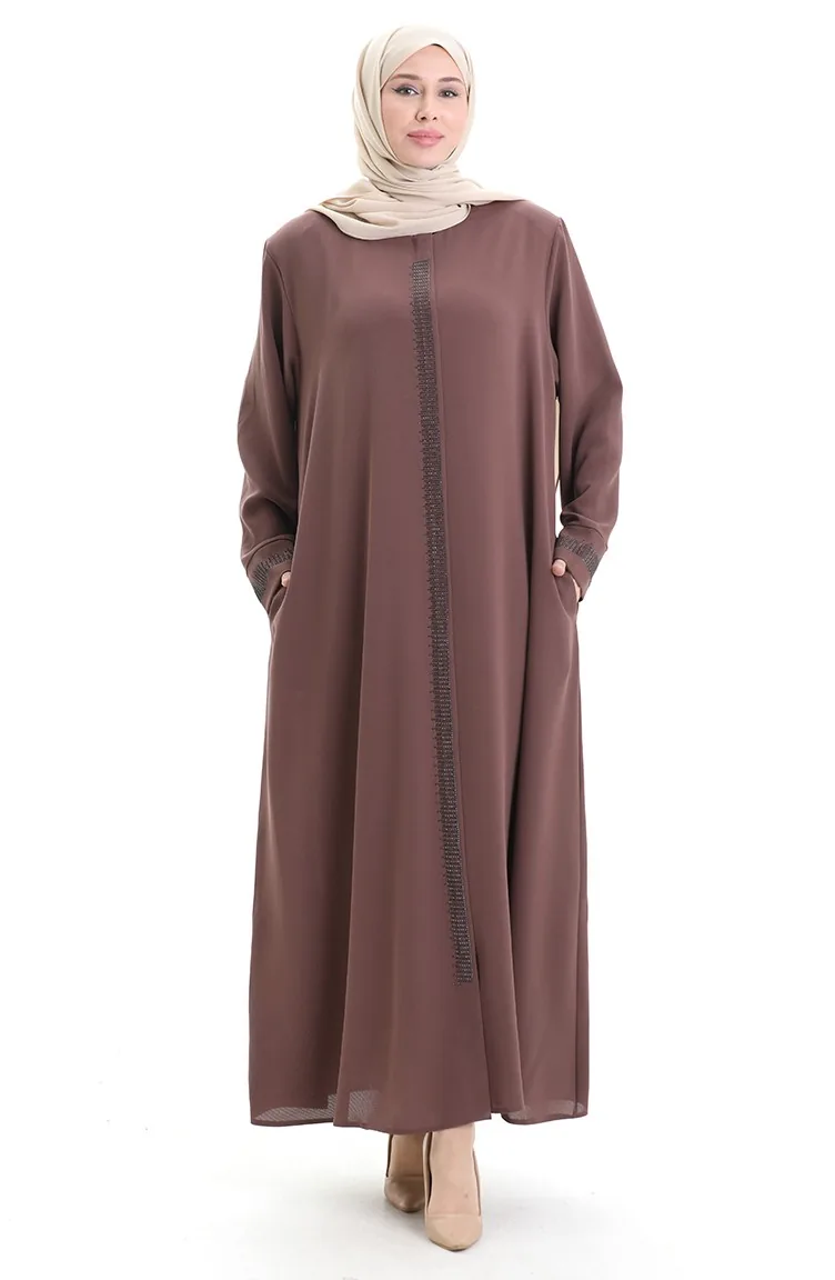 Grote Abaya Met Stenen Print 5067-08 Melkkoffie 5067-08