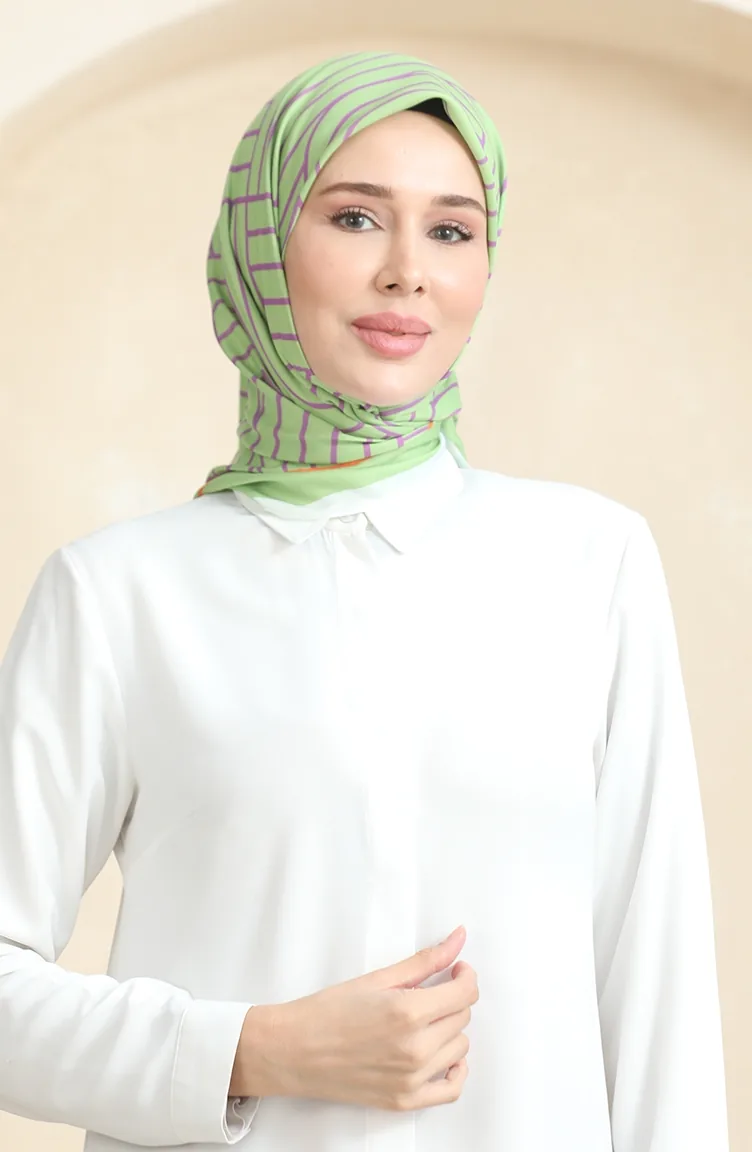 Zachte Katoenen Sjaal 19089-08 Oliegroen Paars 19089-08
