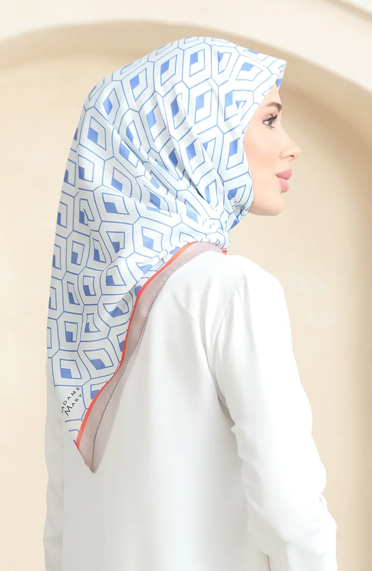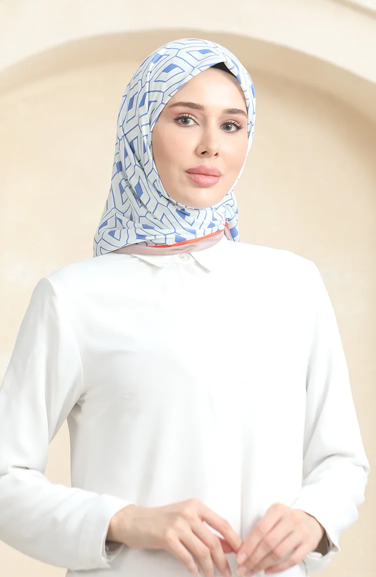 Zachte Katoenen Sjaal 19094-11 Wit Denimblauw 19094-11