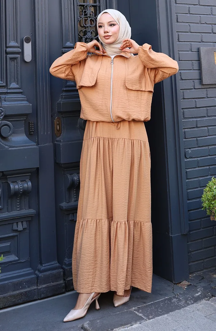 Elastische Mouwen Rits Tweedelig Pak 0129-16 Light Milk Coffee 0129-16