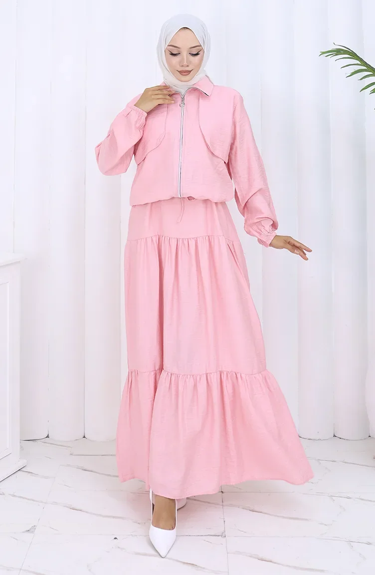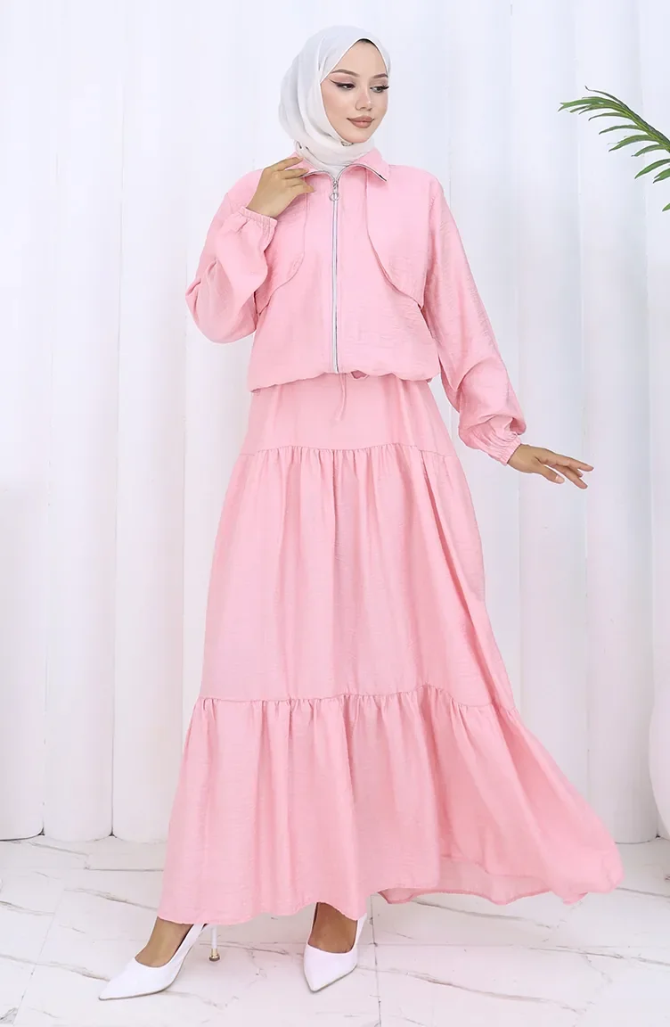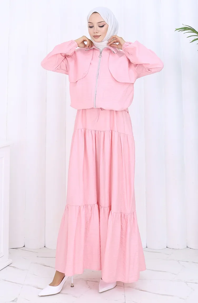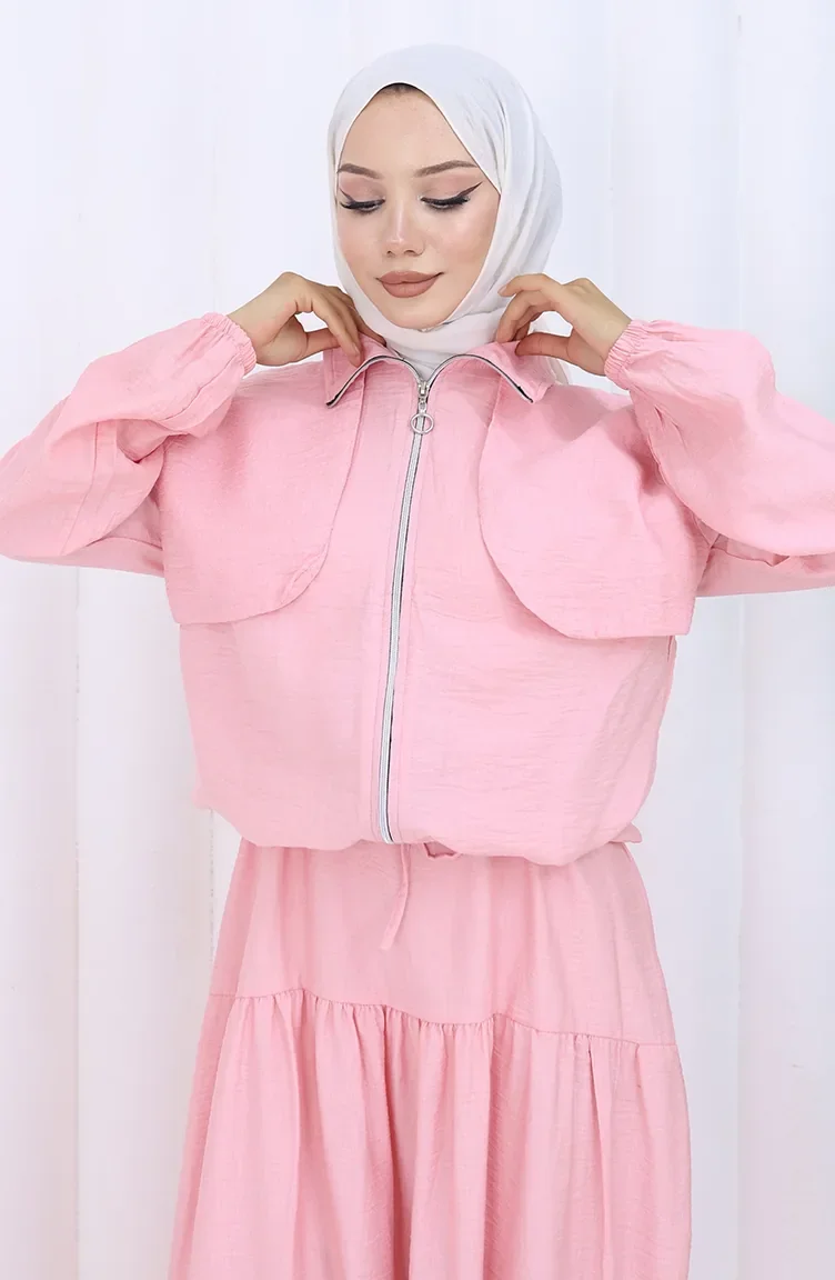 Tweedelig Pak Met Elastische Mouwen En Rits 0129-01 Roze 0129-01
