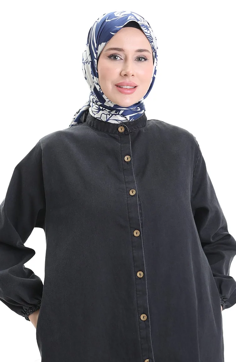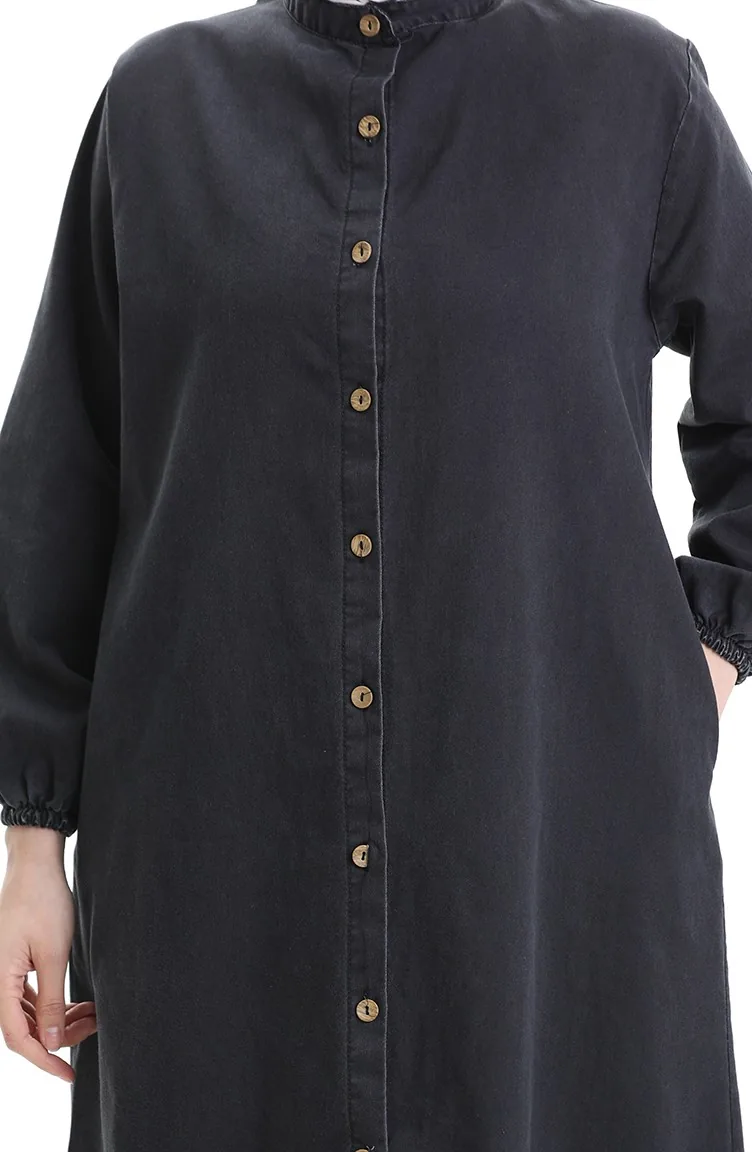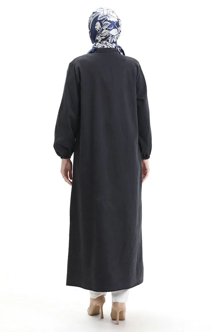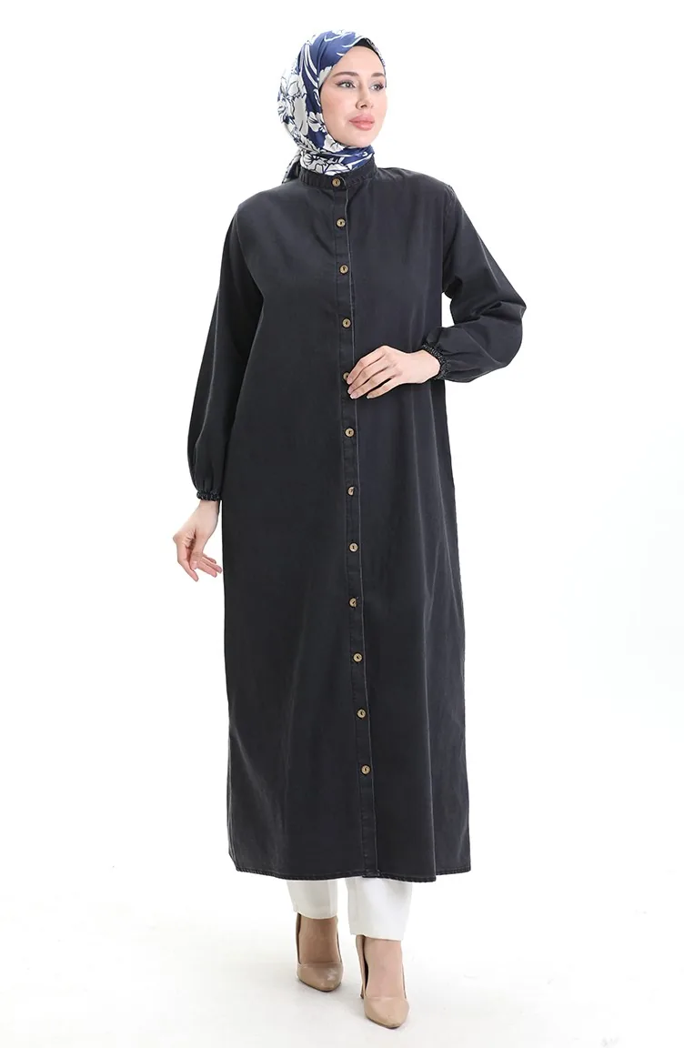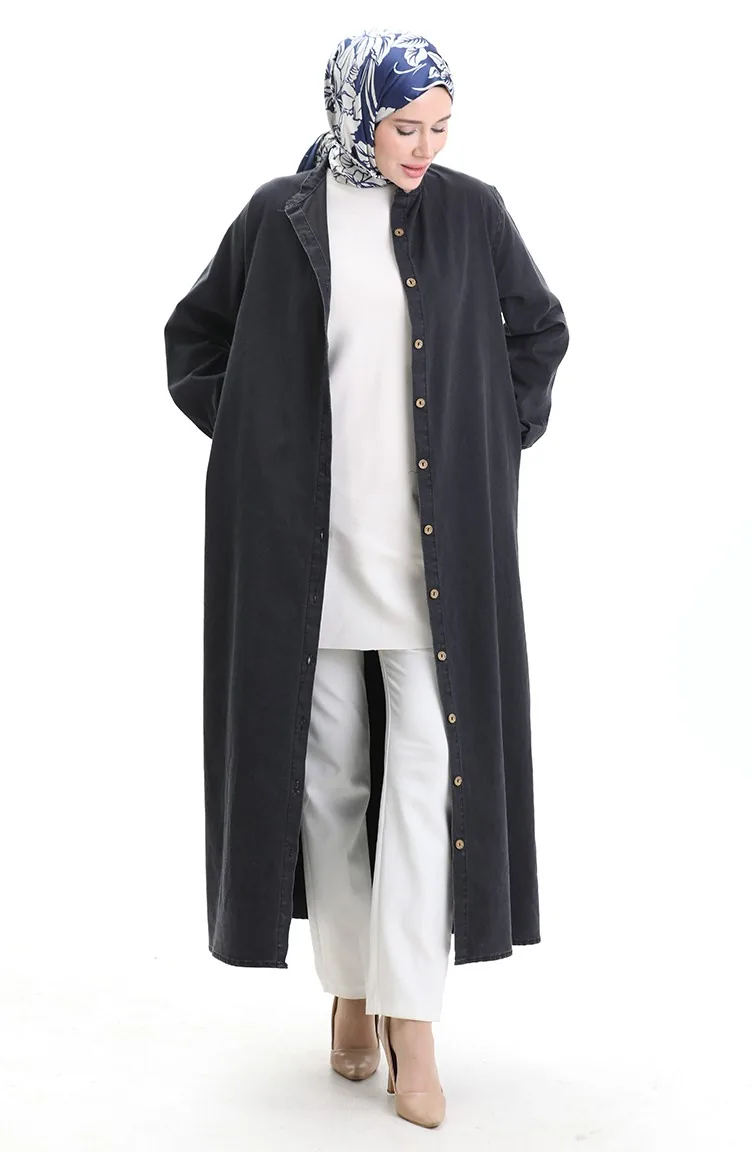 Denim Abaya Met Knopen 0058-03 Zwart 0058-03