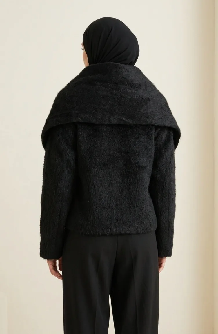 Bontjas Met Knoopsluiting En Sjaalmotief 6341-01 Zwart 6341-01