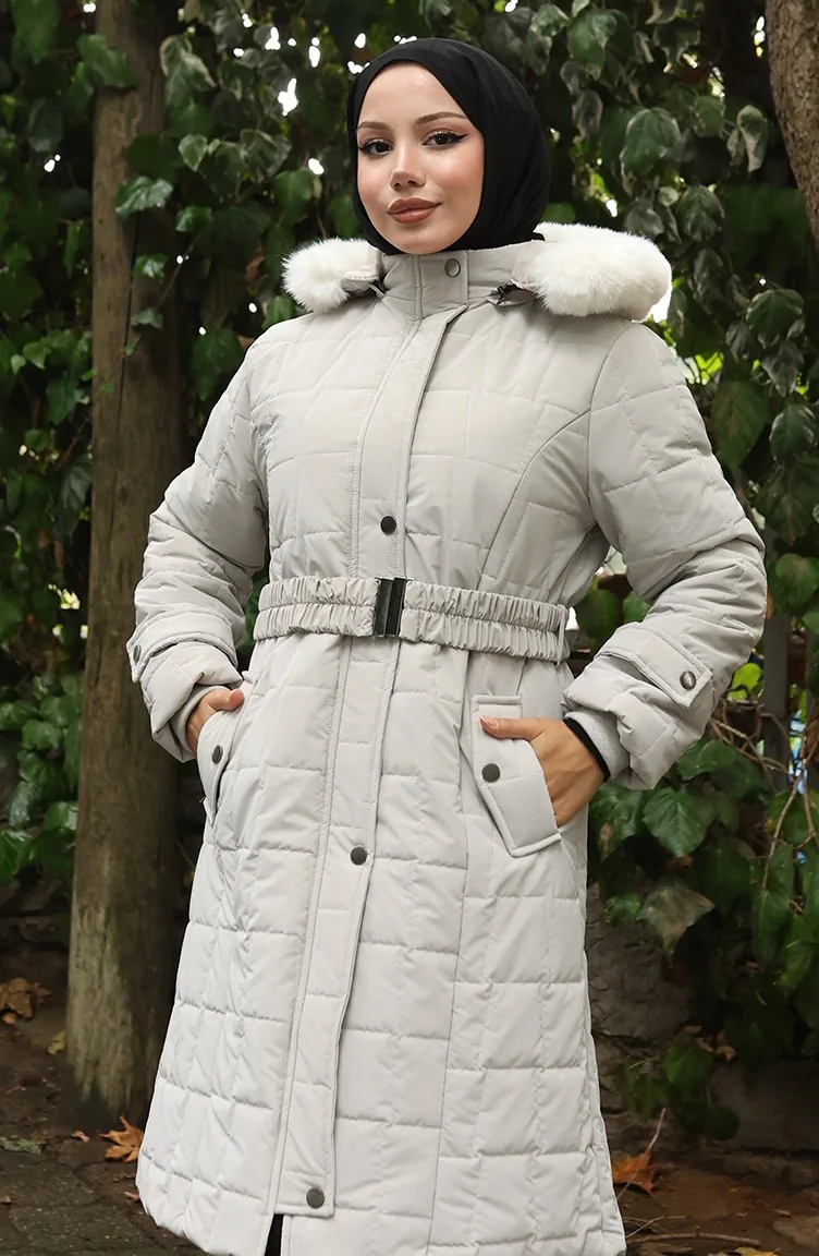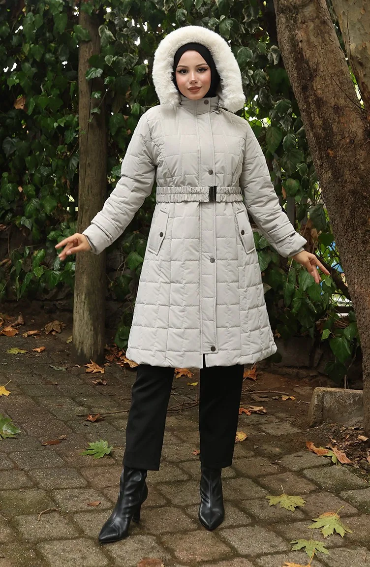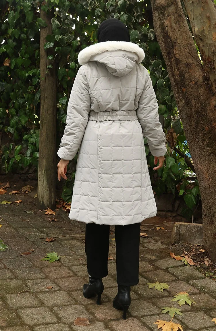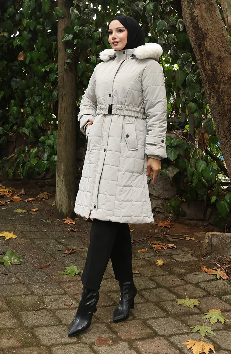 Gewatteerde Jas Met Bontkraag En Riem 6307-04 Stone 6307-04