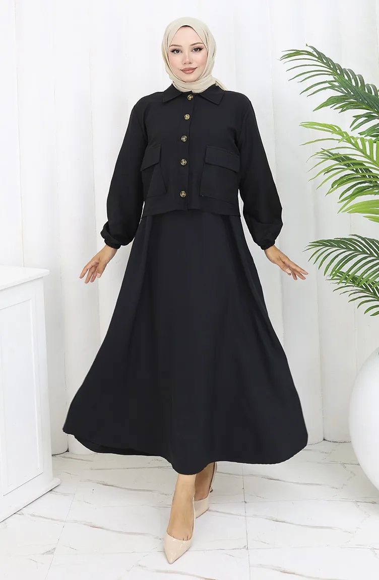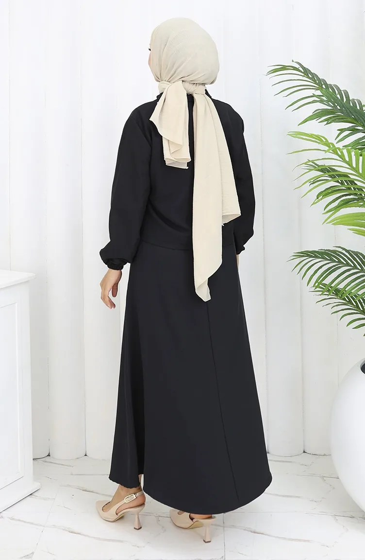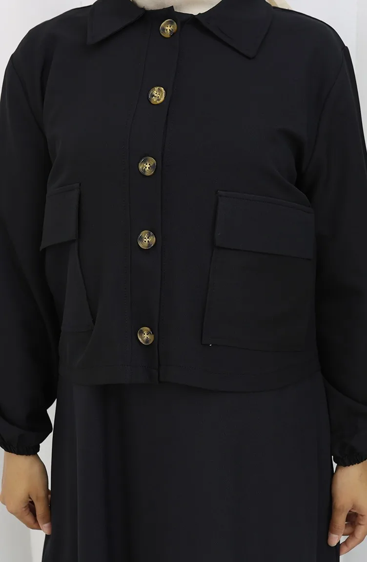 Black color is used. The cotton fabric has an absorbent texture. It has a plain appearance. Buttons have been used to make it easy to use. It's made of elastic sleeves. Suitable for 4 seasons. Plus size option available.