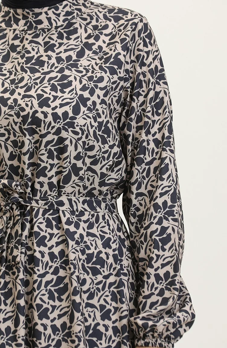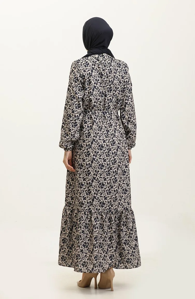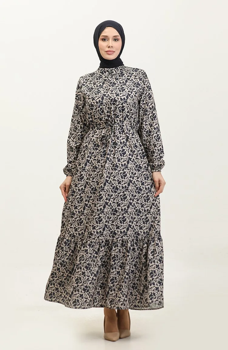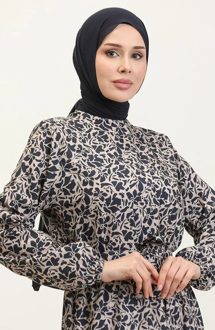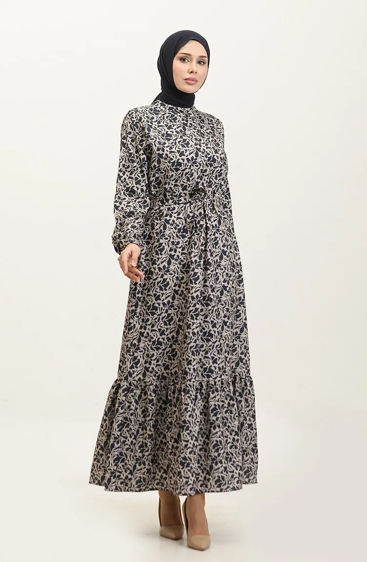 Adile Crêpejurk Met Bloemenpatroon 0347-05 Marineblauw 0347-05