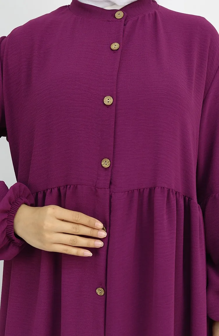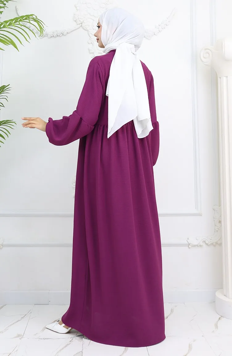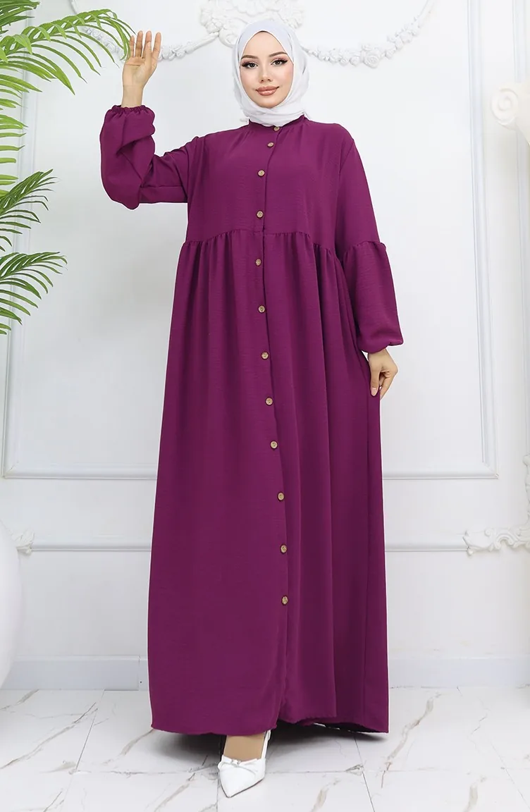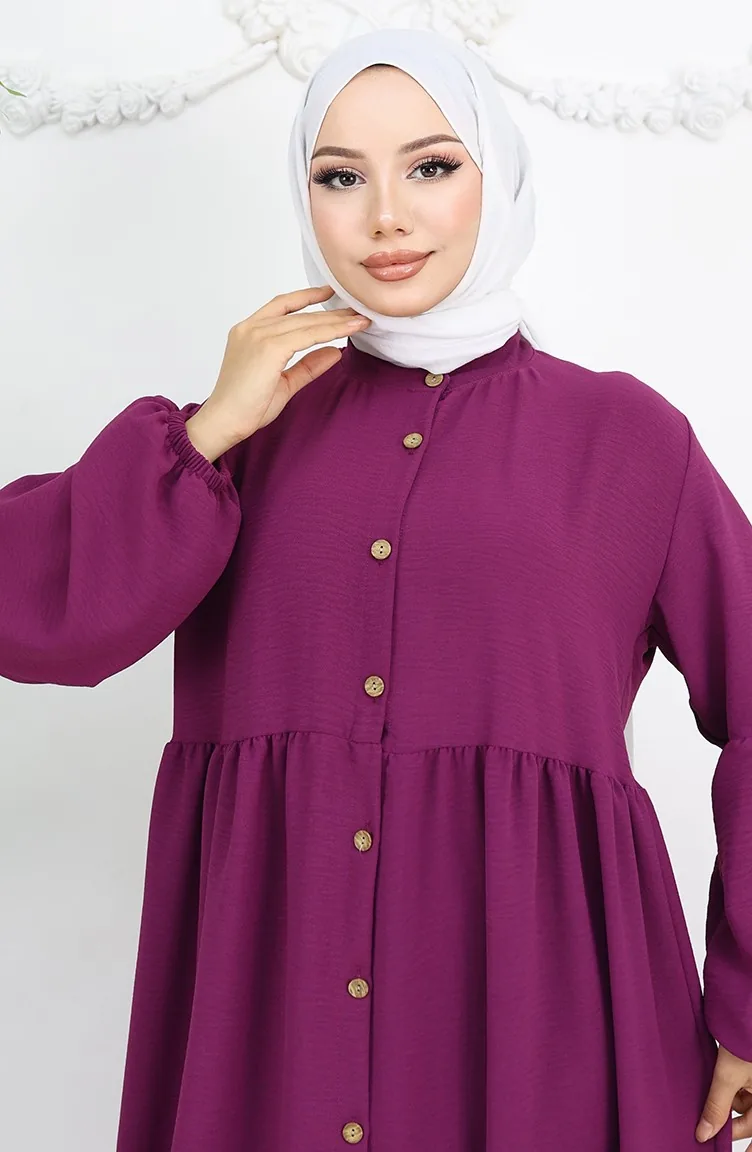 Aerobin Stoffen Jurk Met Knopen 0045-05 Pruim 0045-05
