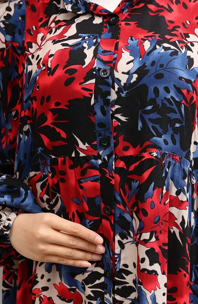 Indigo color is used. Viscose is a type of synthetic fabric and is convenient to use. Designed with patterned fabric. Buttons have been used to make it easy to use. It's made of elastic sleeves. Dik Yaka. Suitable for 4 seasons. Plus size option available.