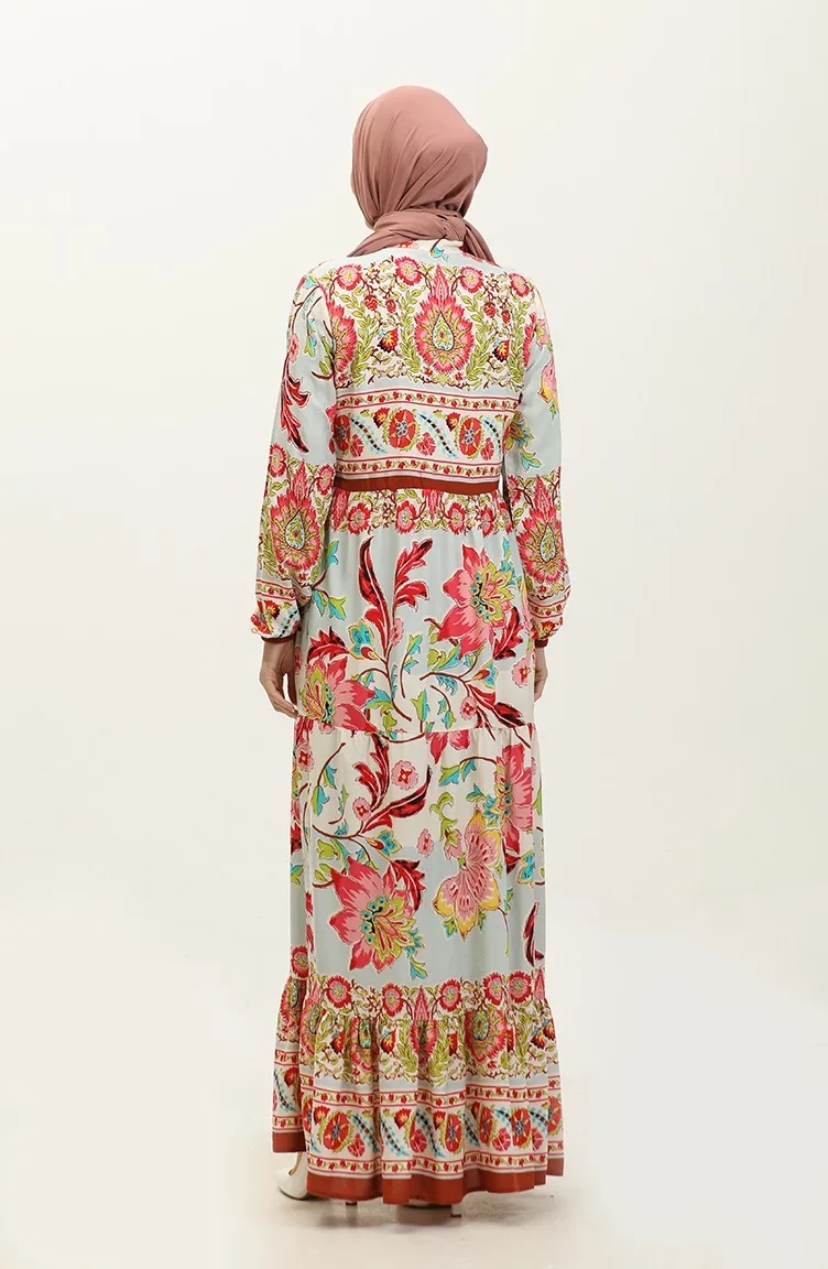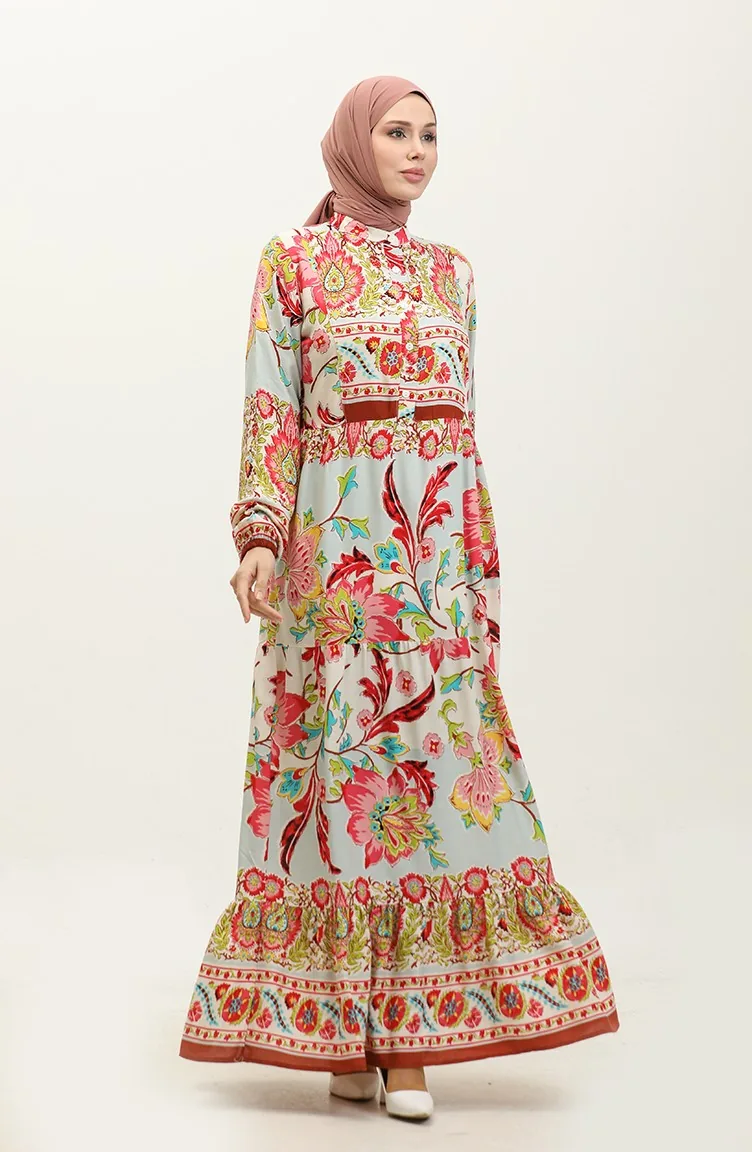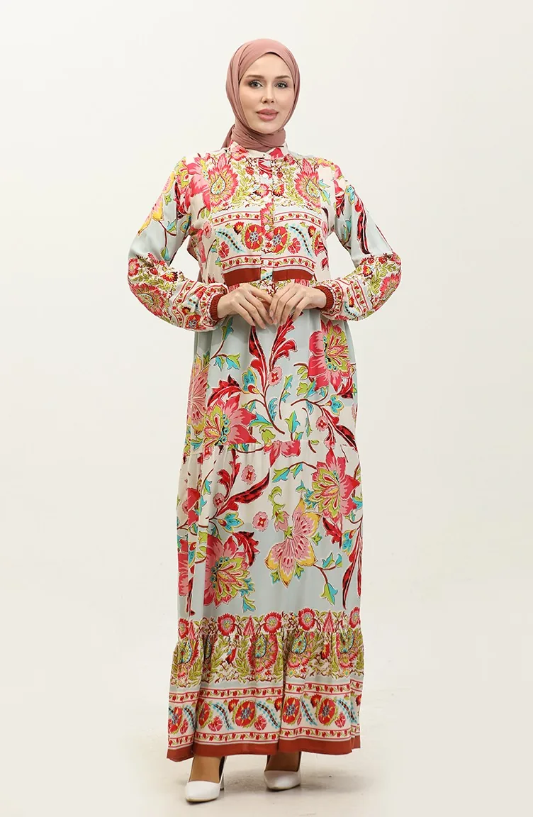 Alaçatı Viscosejurk Met Patroon 0334-01 Beige Groen 0334-01