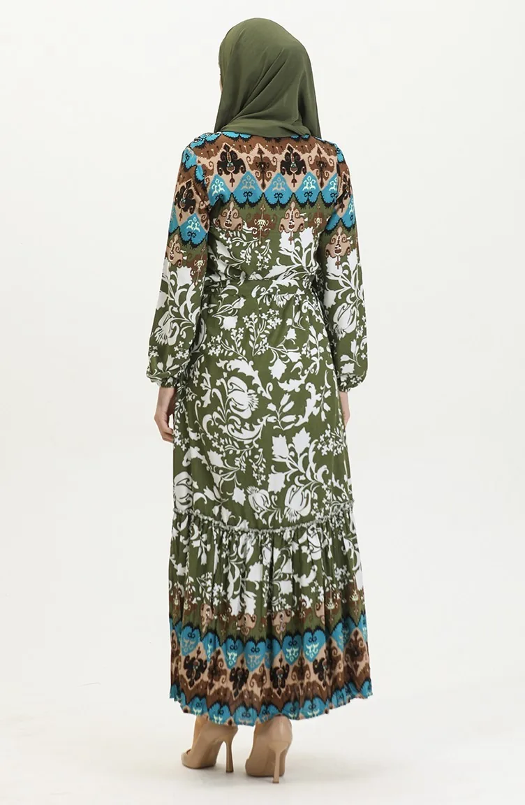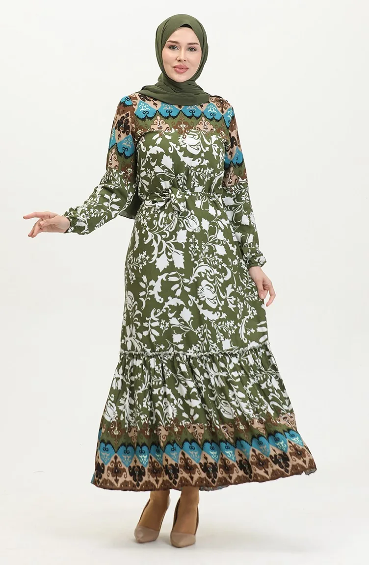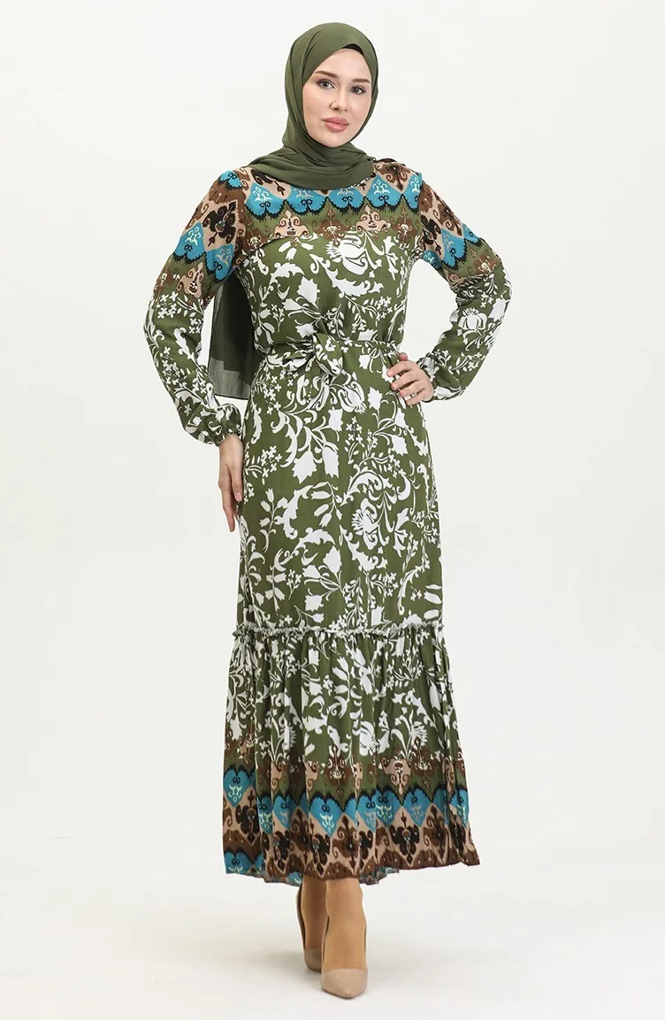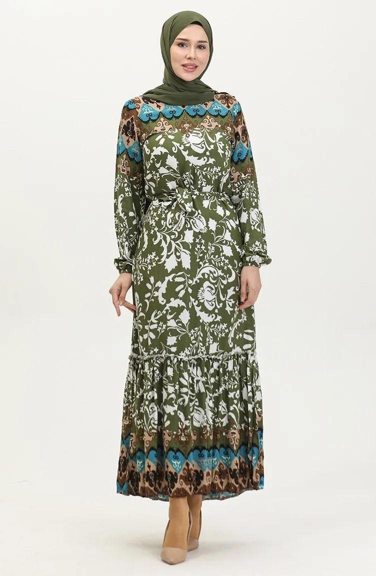 Alisa Geplooide Viscose Jurk Met Riem 4599E-01 Khaki 4599E-01