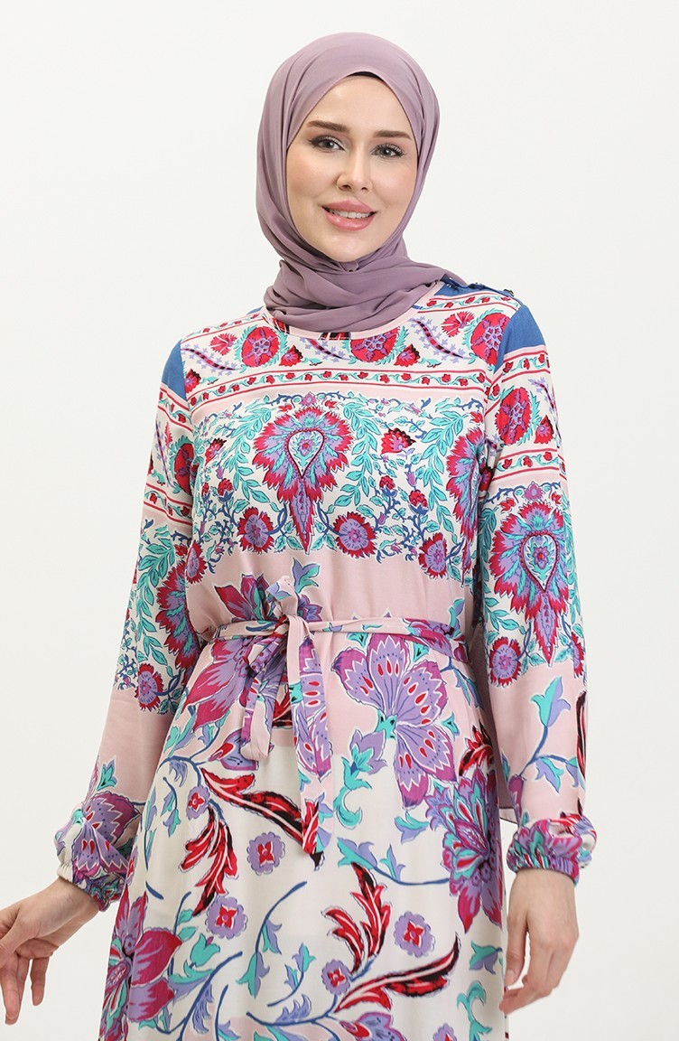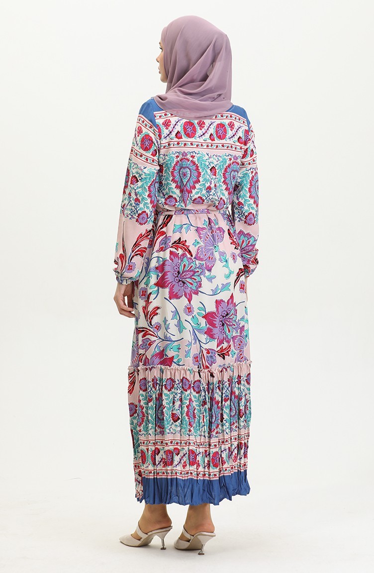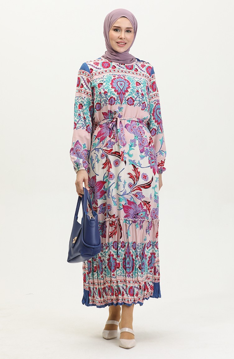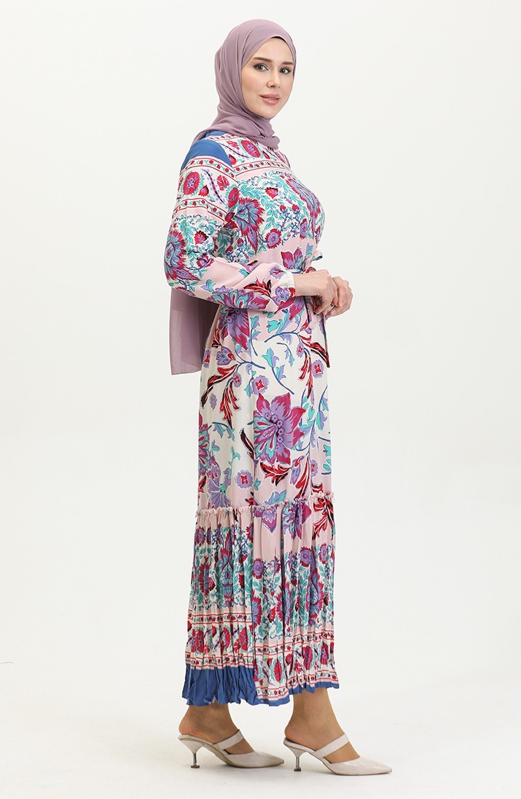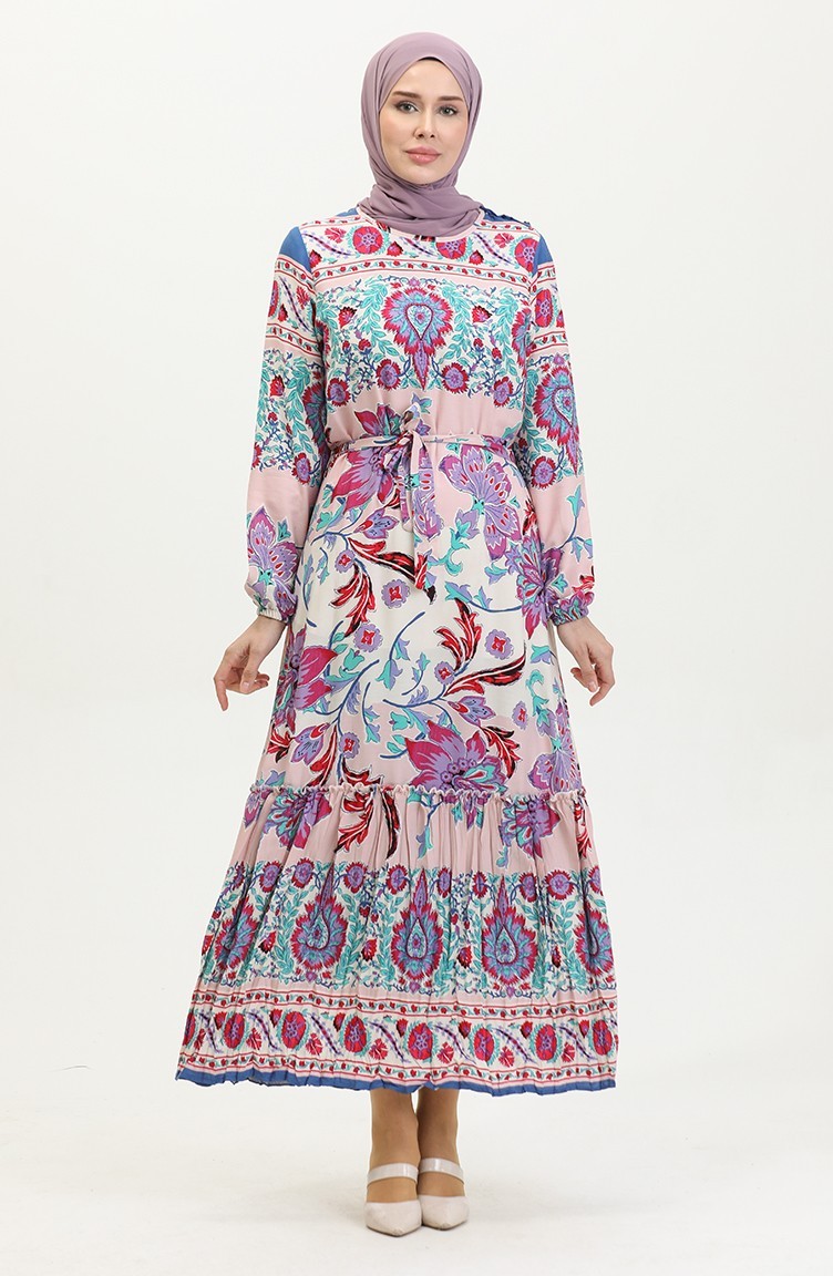 Alisa Geplooide Viscose Jurk Met Riem 4599H-02 Powder Saxe 4599H-02