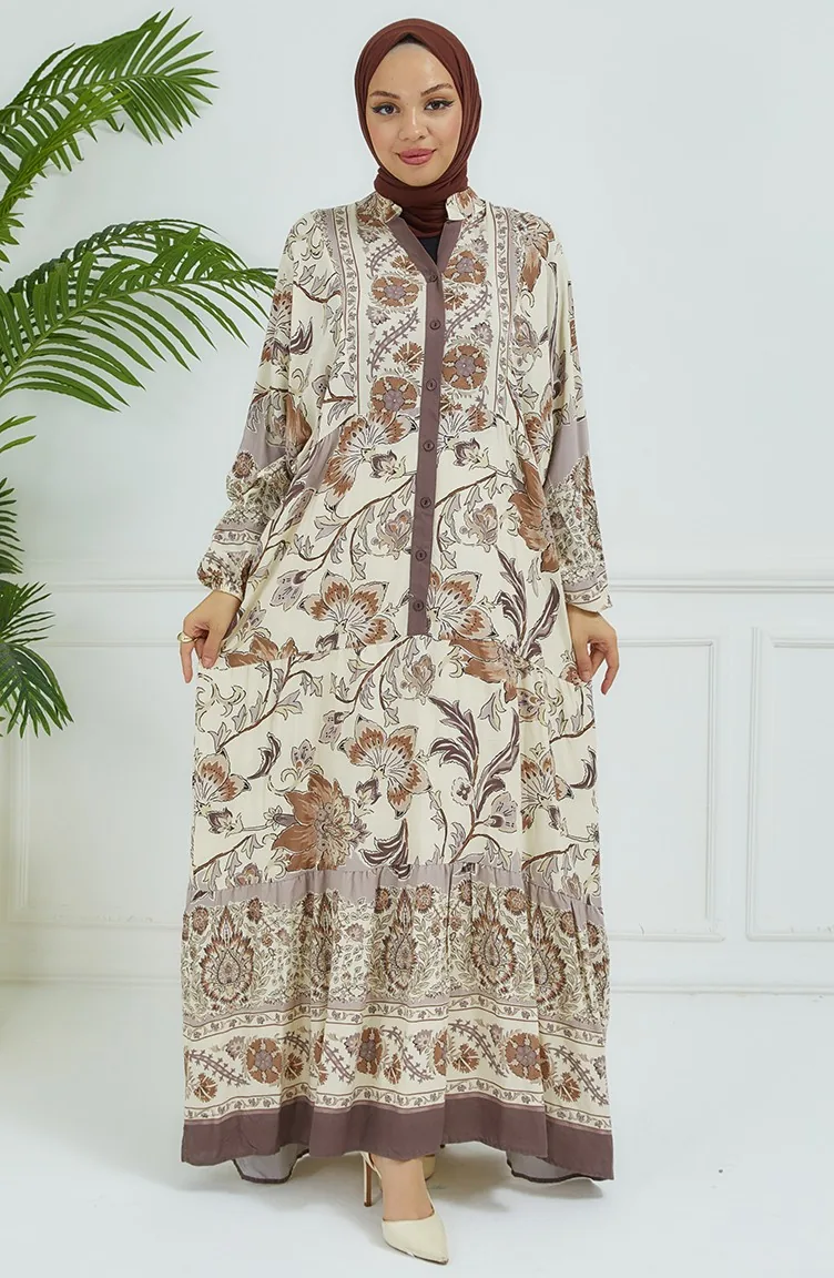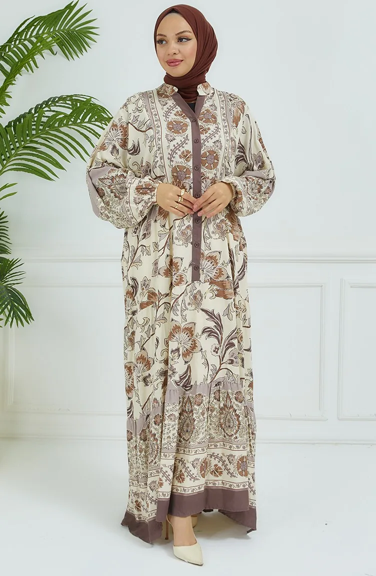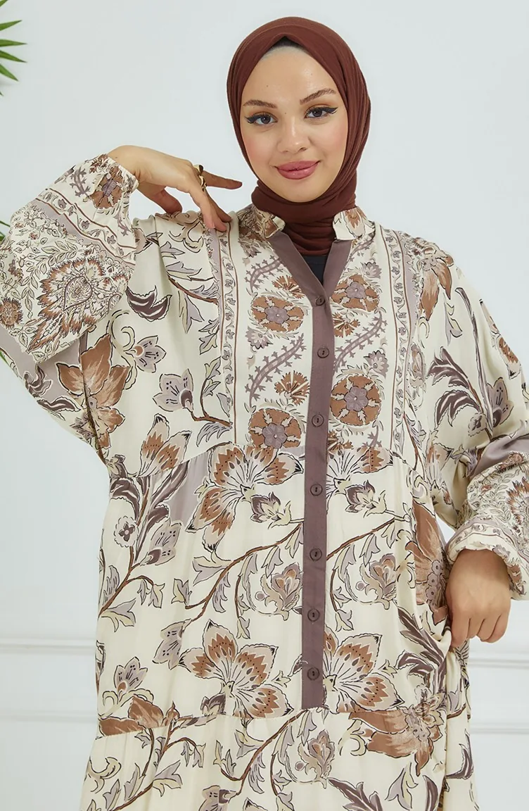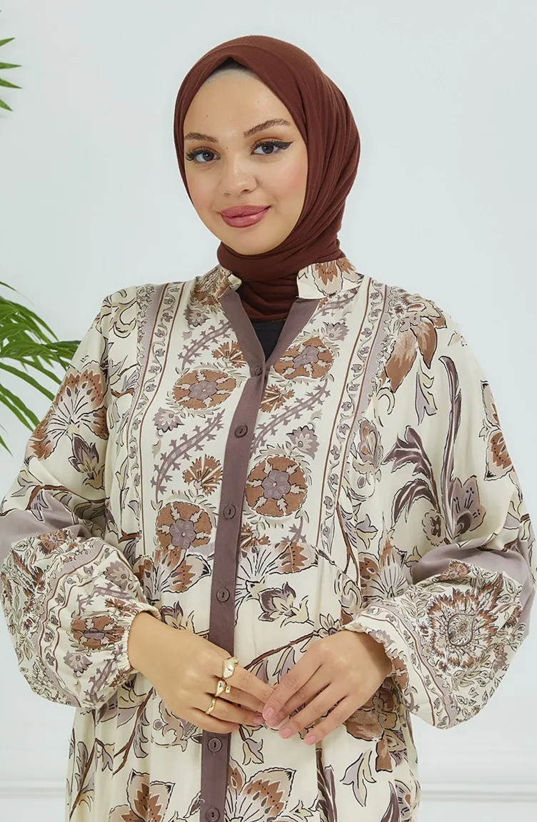 Bloemenjurk Met Ballonmouwen 4092-04 Mink 4092-04